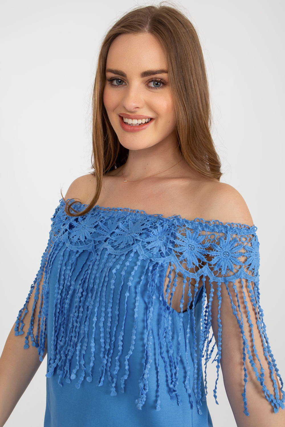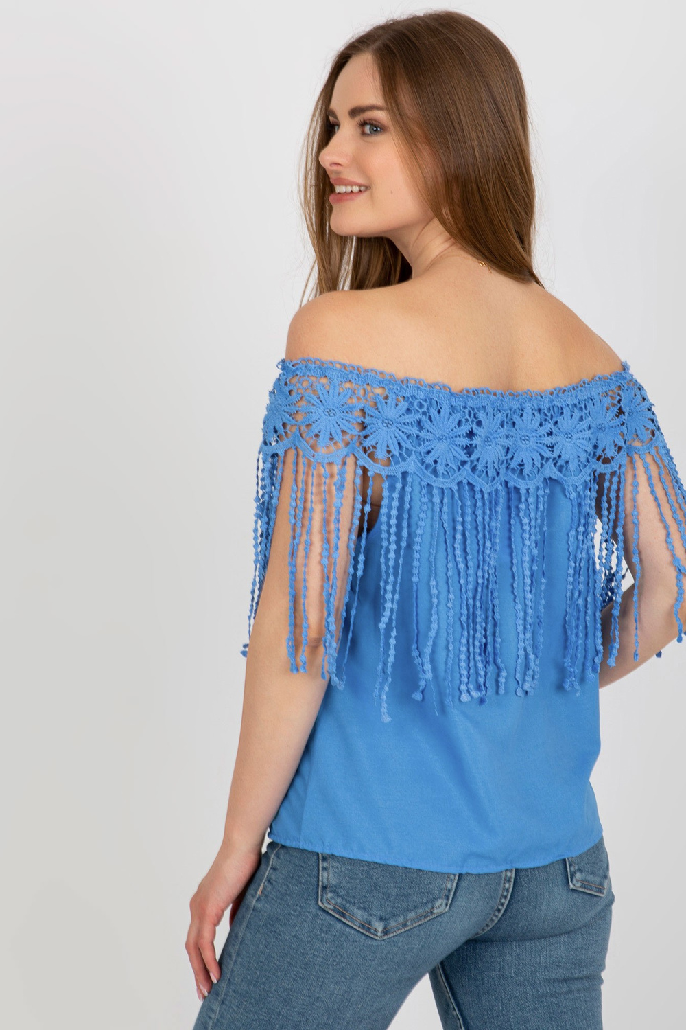 Zila vasaras spāņu blūze ar bārkstīm.