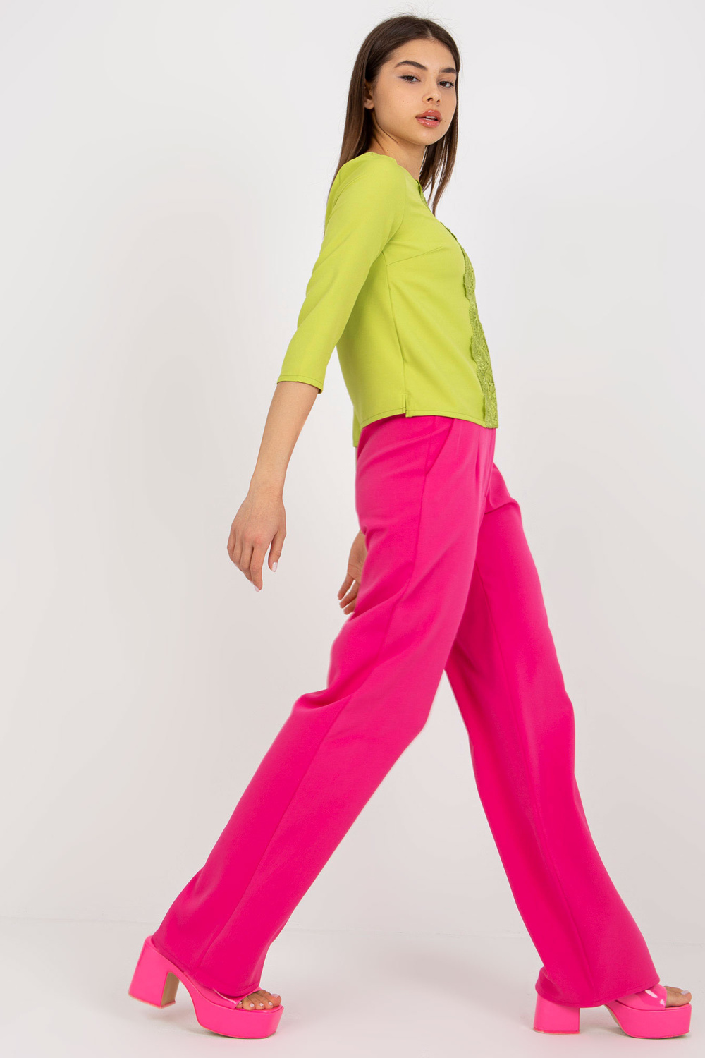 Svinīga laima krāsas blūze ar apaļu kakla izgriezumu.
