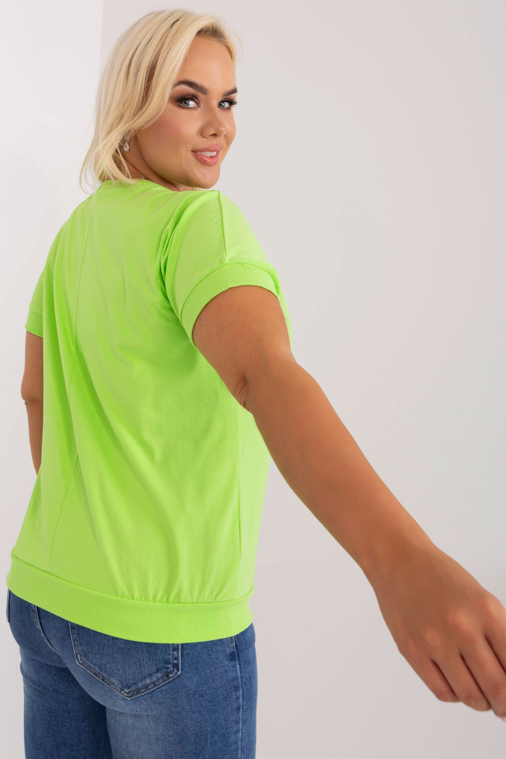 Modele valkā vienu izmēru. Modeles izmēri: augums 172 cm, krūtis 103 cm, viduklis 73 cm, gurni 103 cm.