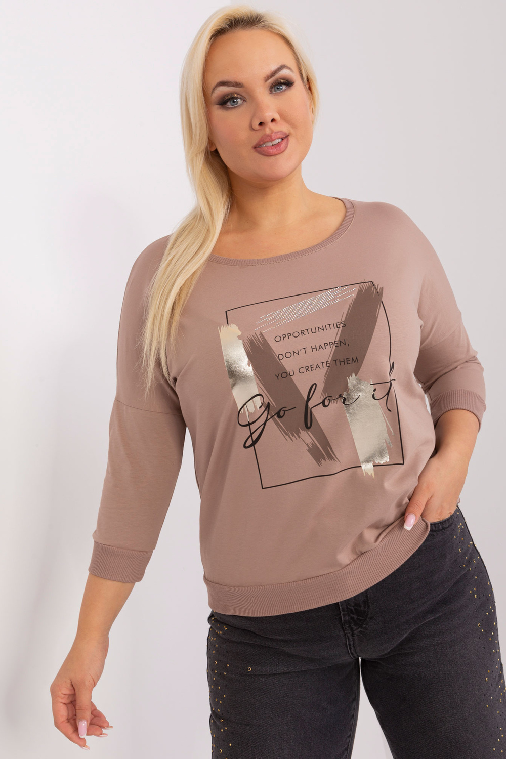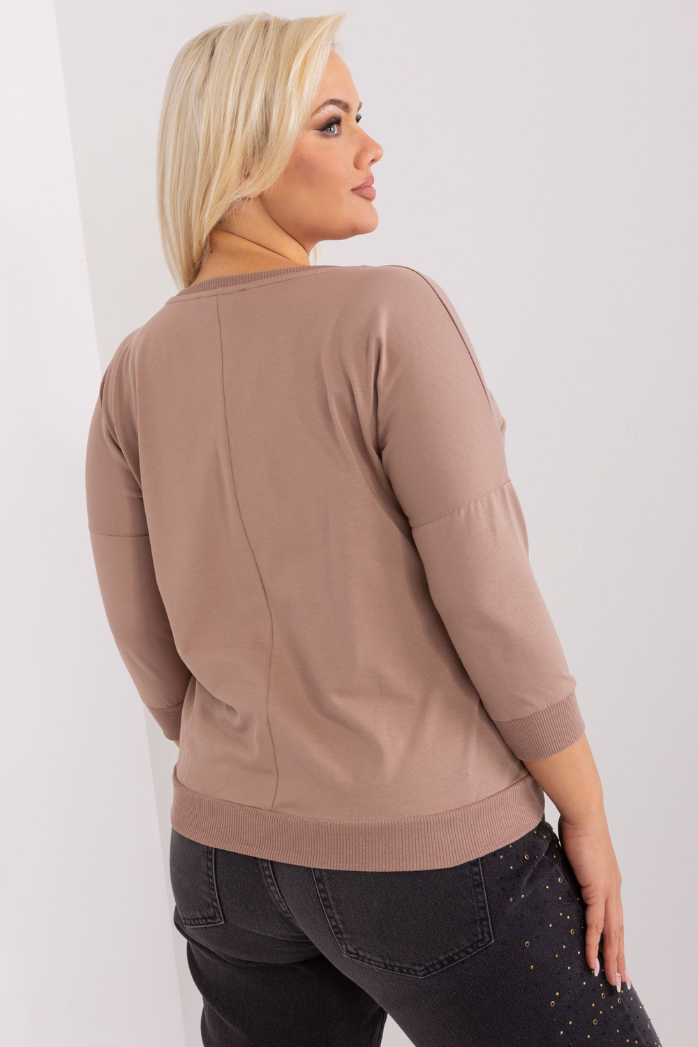 Tumši bēša plus izmēra blūze ar 3/4 piedurknēm .