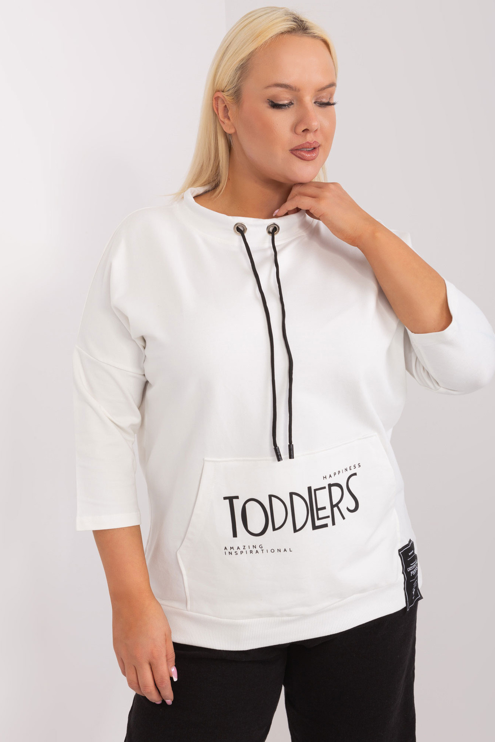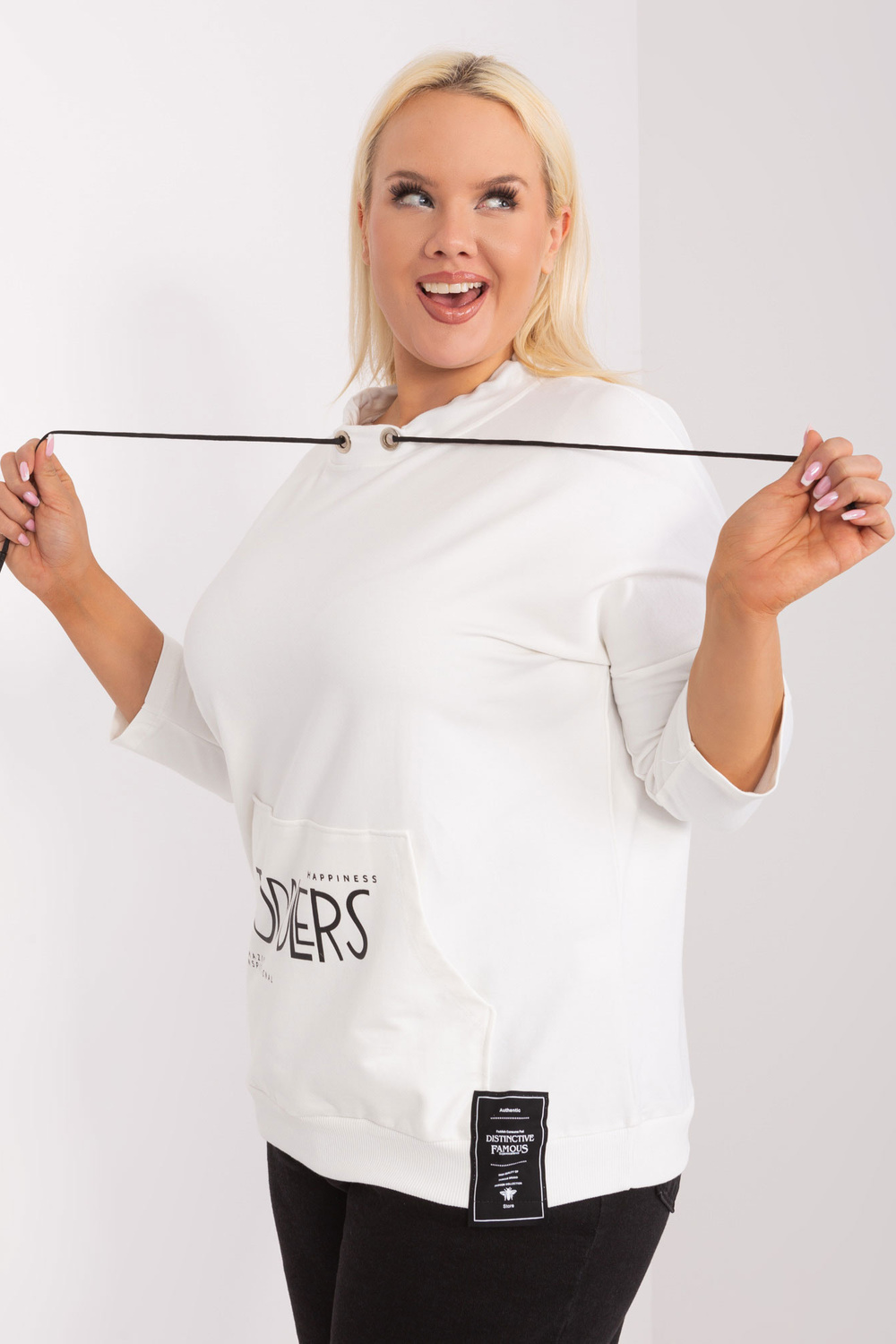 Modele valkā viena izmēra izmēru. Modeļa izmēri: augums 172 cm, krūtis 103 cm, viduklis 73 cm, gurni 103 cm.