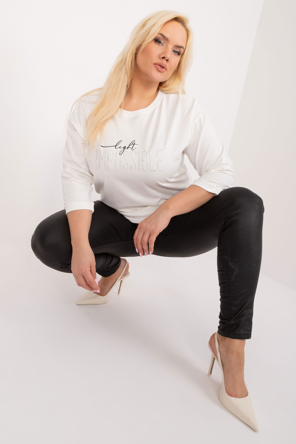 Vienizmēra blūzes izmēri mērīti plakaniski: paduses platums - 60 cm, piedurknes garums - 42 cm, kopējais garums - 65 cm.