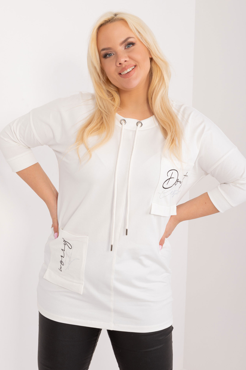 Vienizmēra blūzes izmēri mērīti plakaniski: paduses platums - 65 cm, piedurknes garums - 40 cm, kopējais garums - 75 cm.