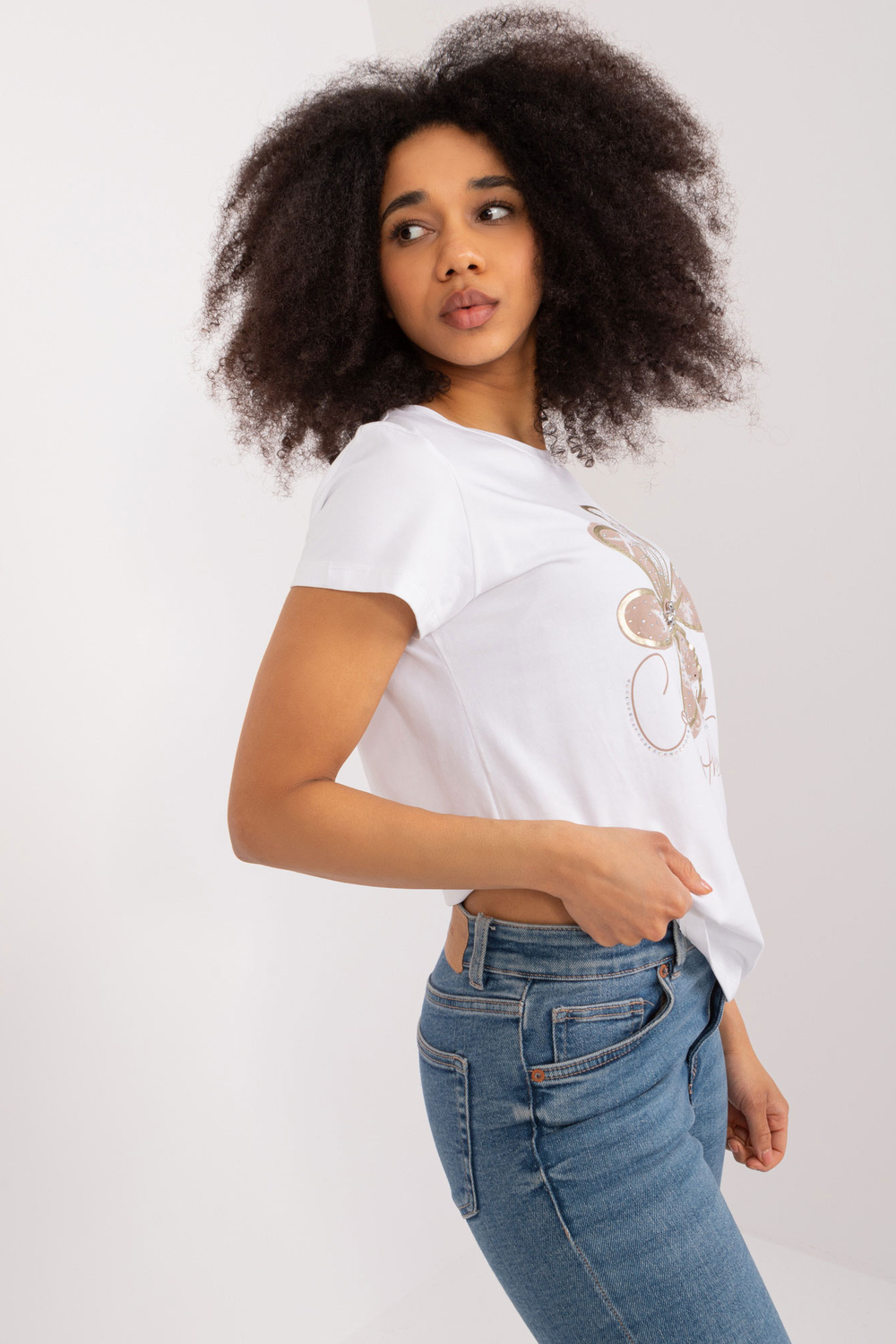T-krekla izmēri S/M izmērā mērot plakanu: platums zem padusēm - 48 cm, kopējais garums - 61 cm.