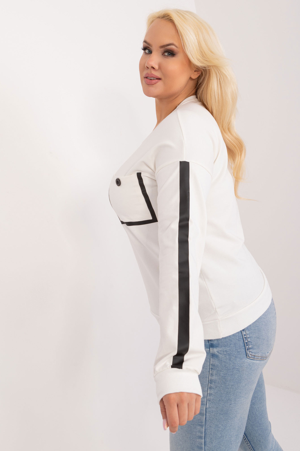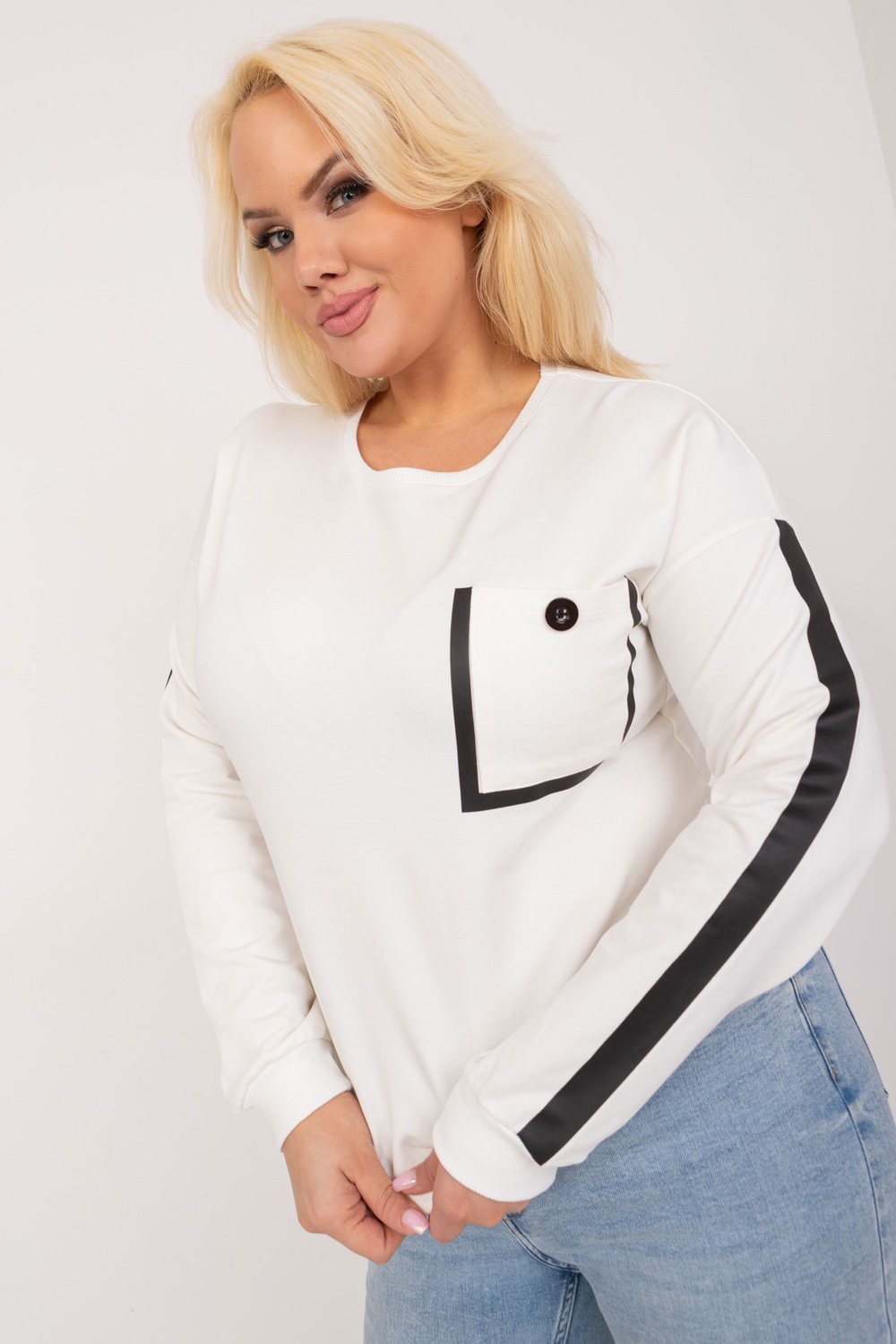 Vienizmēra blūzes izmēri mērīti plakaniski: paduses platums - 58 cm, piedurknes garums - 59 cm, kopējais garums - 61 cm.