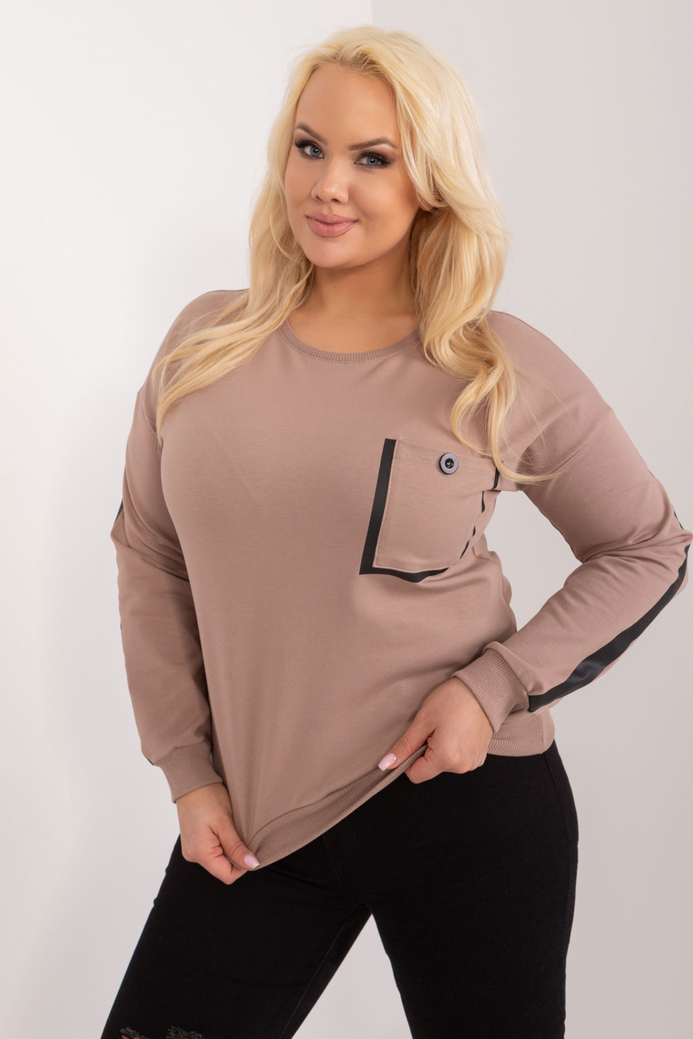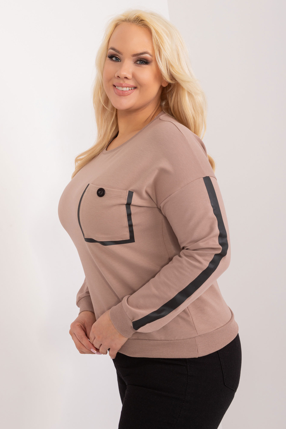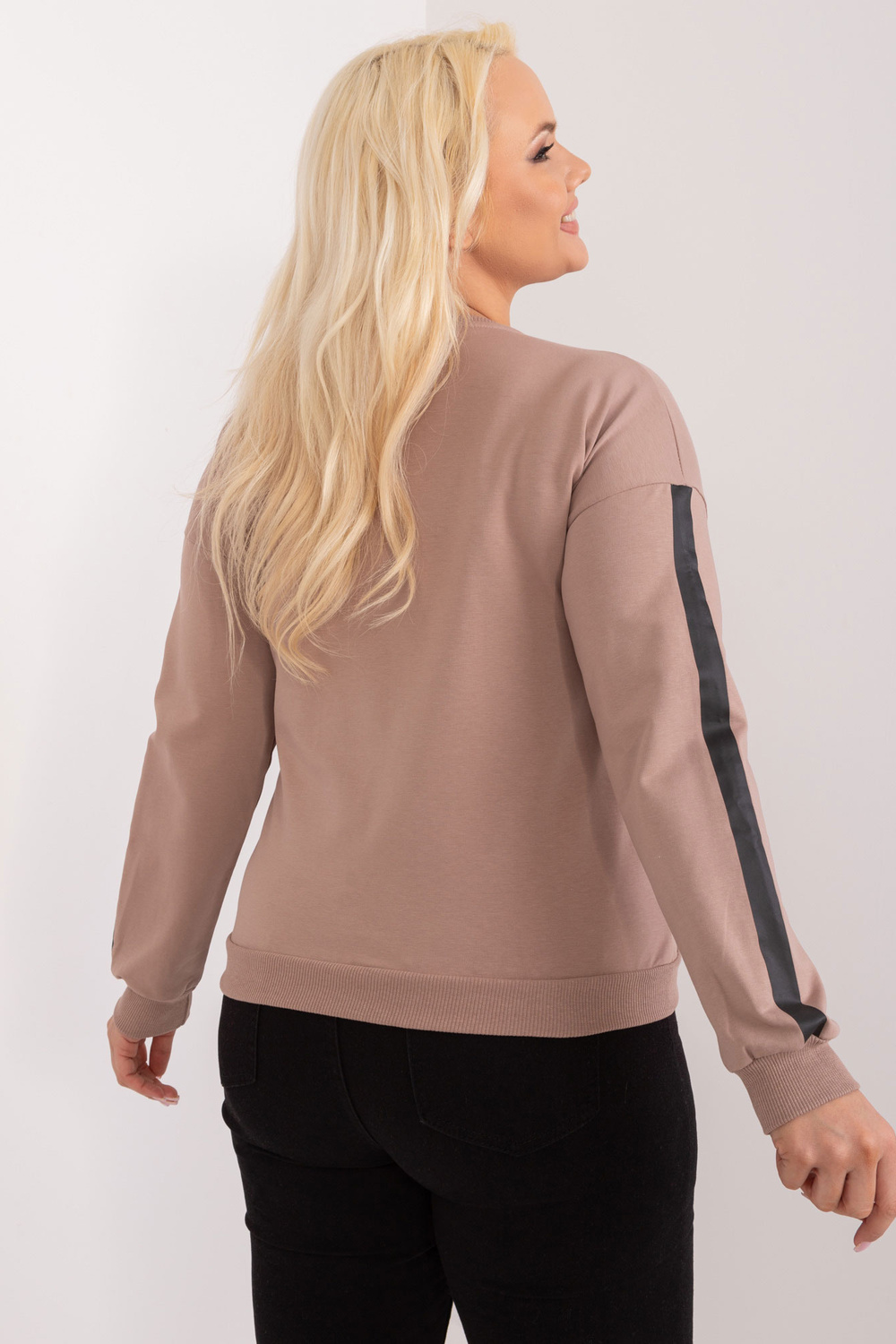 Vienizmēra blūzes izmēri mērīti plakaniski: paduses platums - 58 cm, piedurknes garums - 59 cm, kopējais garums - 61 cm.