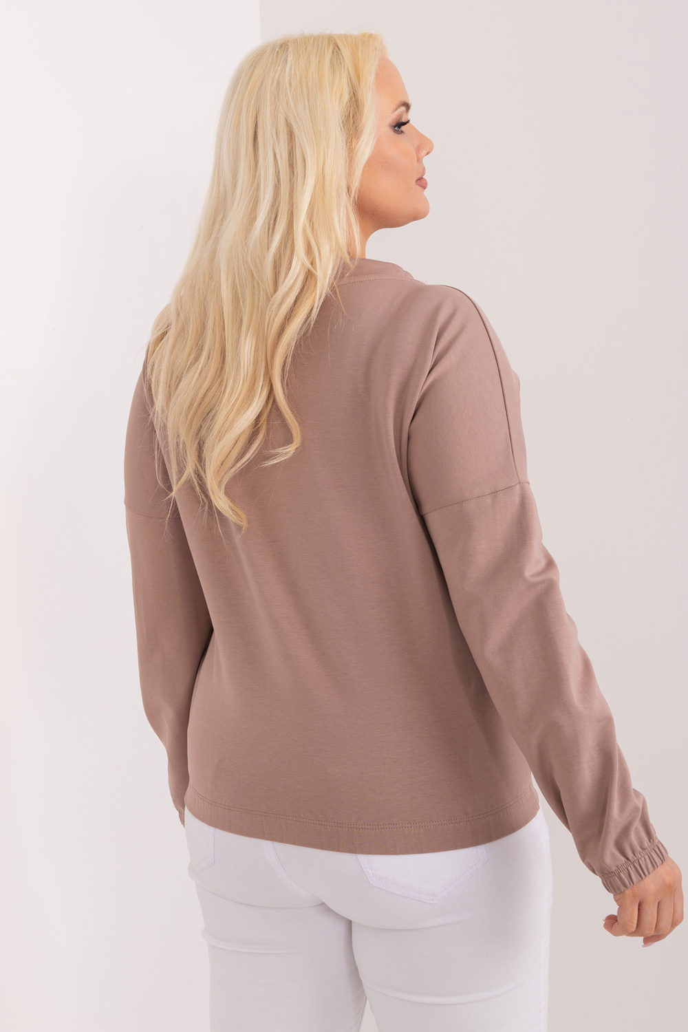 Vienizmēra blūzes izmēri mērīti plakaniski: paduses platums - 64 cm, piedurknes garums - 60 cm, kopējais garums - 64 cm.