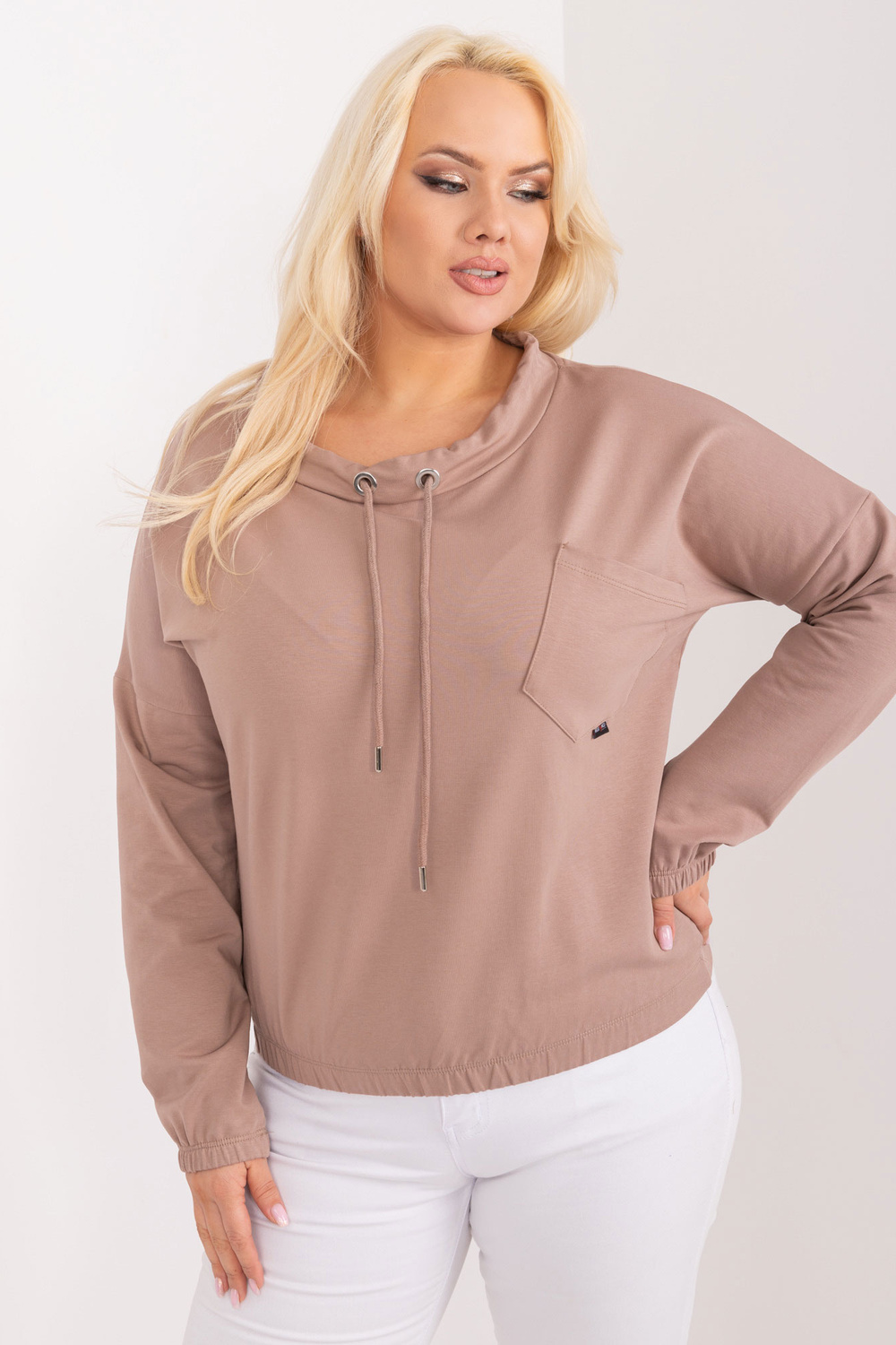Modele valkā viena izmēra izmēru. Modeļa izmēri: augums 172 cm, krūtis 103 cm, viduklis 73 cm, gurni 103 cm.