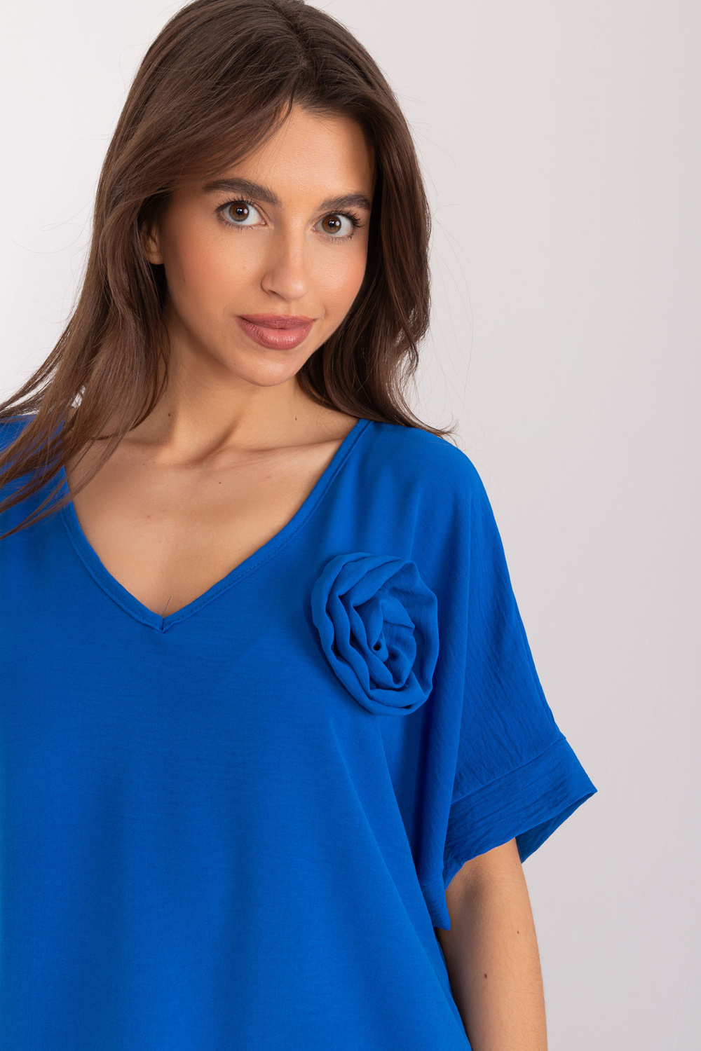 Vienizmēra blūzes izmēri uzmērīti plakani: paduses platums - 65 cm, kopējais garums - 67 cm.