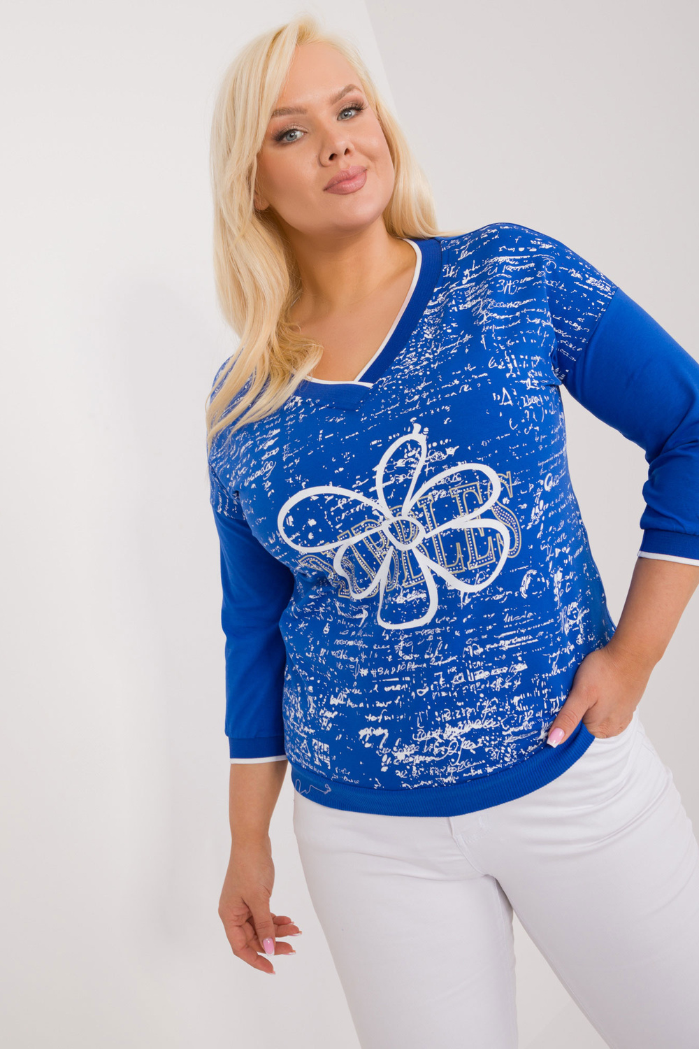 Vienizmēra blūzes izmēri mērīti plakani: paduses platums - 57 cm, piedurknes garums - 42 cm, kopējais garums - 62 cm.
