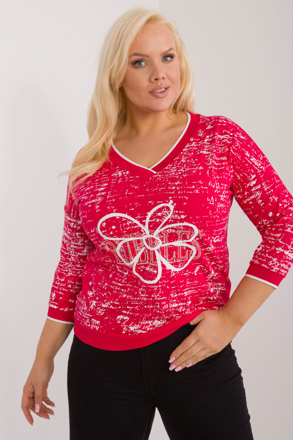 Vienizmēra blūzes izmēri mērīti plakani: paduses platums - 57 cm, piedurknes garums - 42 cm, kopējais garums - 62 cm.