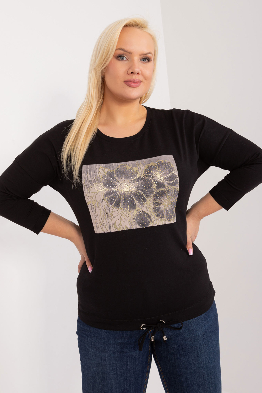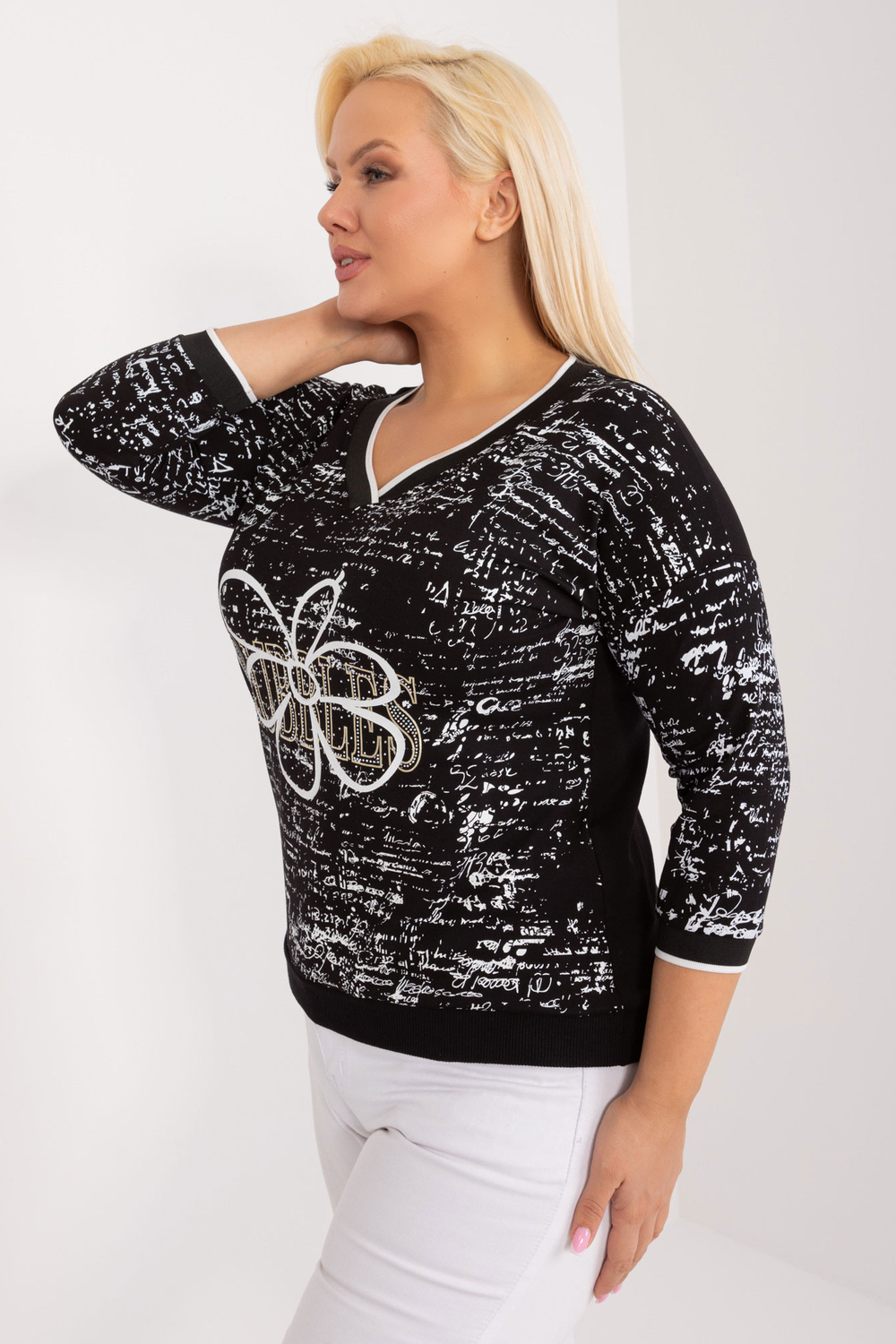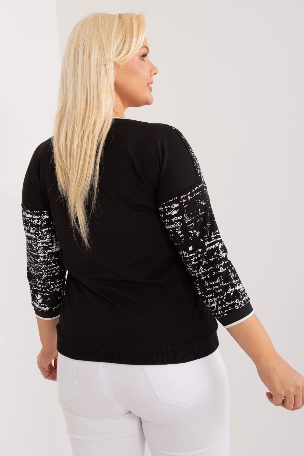 Vienizmēra blūzes izmēri mērīti plakani: paduses platums - 57 cm, piedurknes garums - 42 cm, kopējais garums - 62 cm.