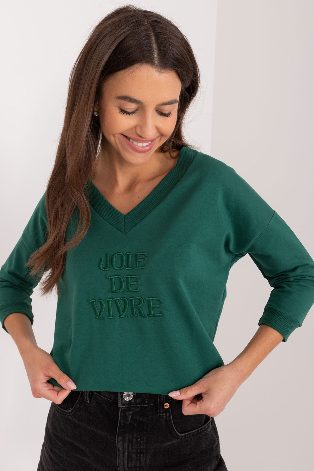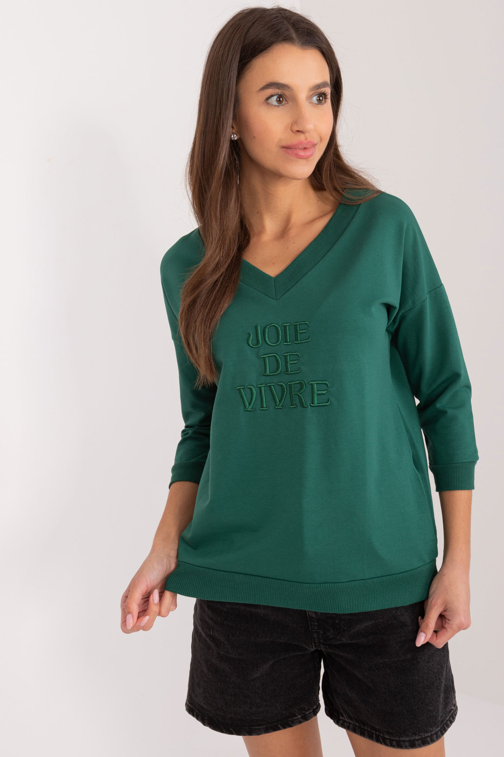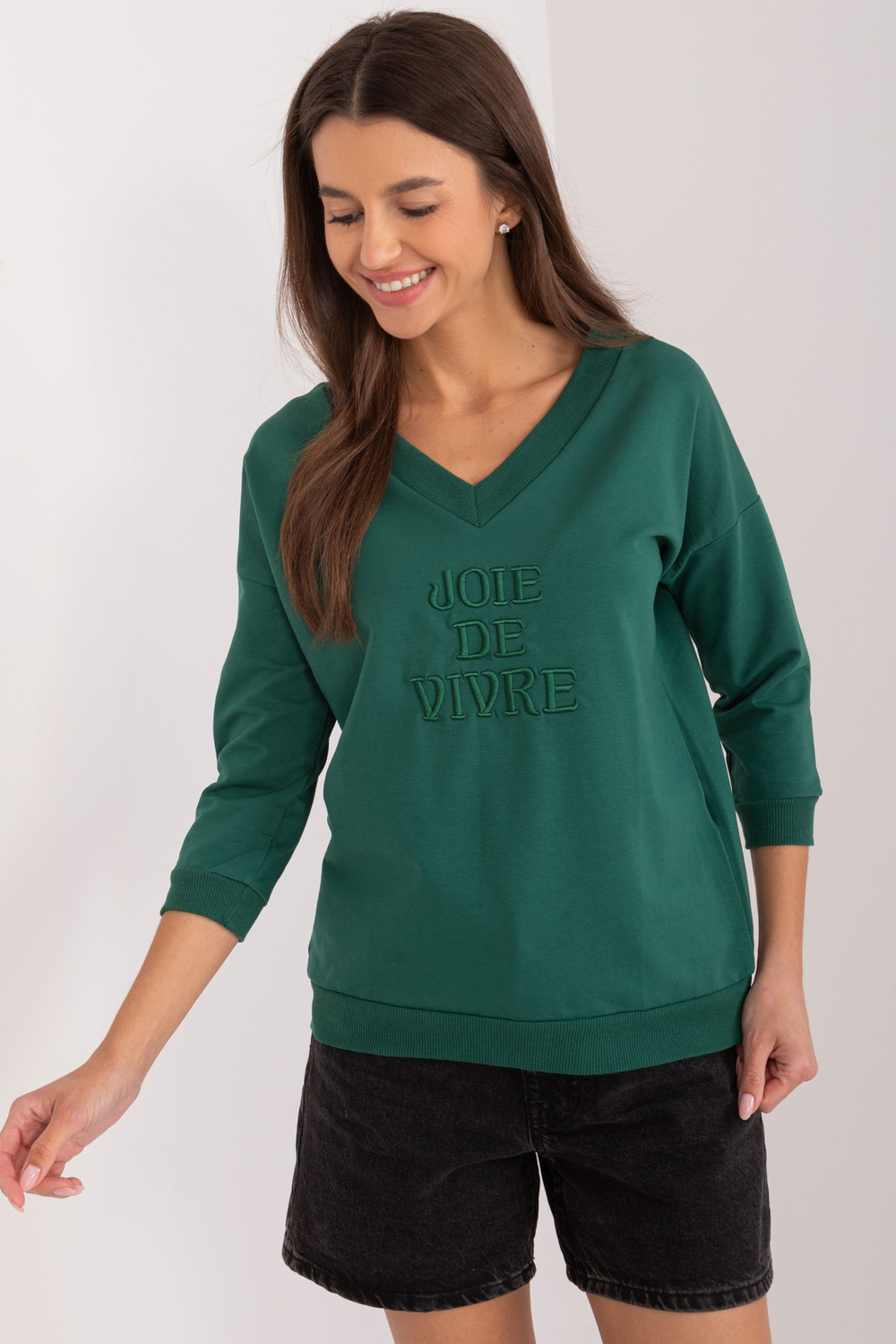 Džempera izmēri viena izmēra izmērā, mērot plakani: paduses platums - 53 cm, kopējais garums - 59 cm, piedurknes garums - 41 cm