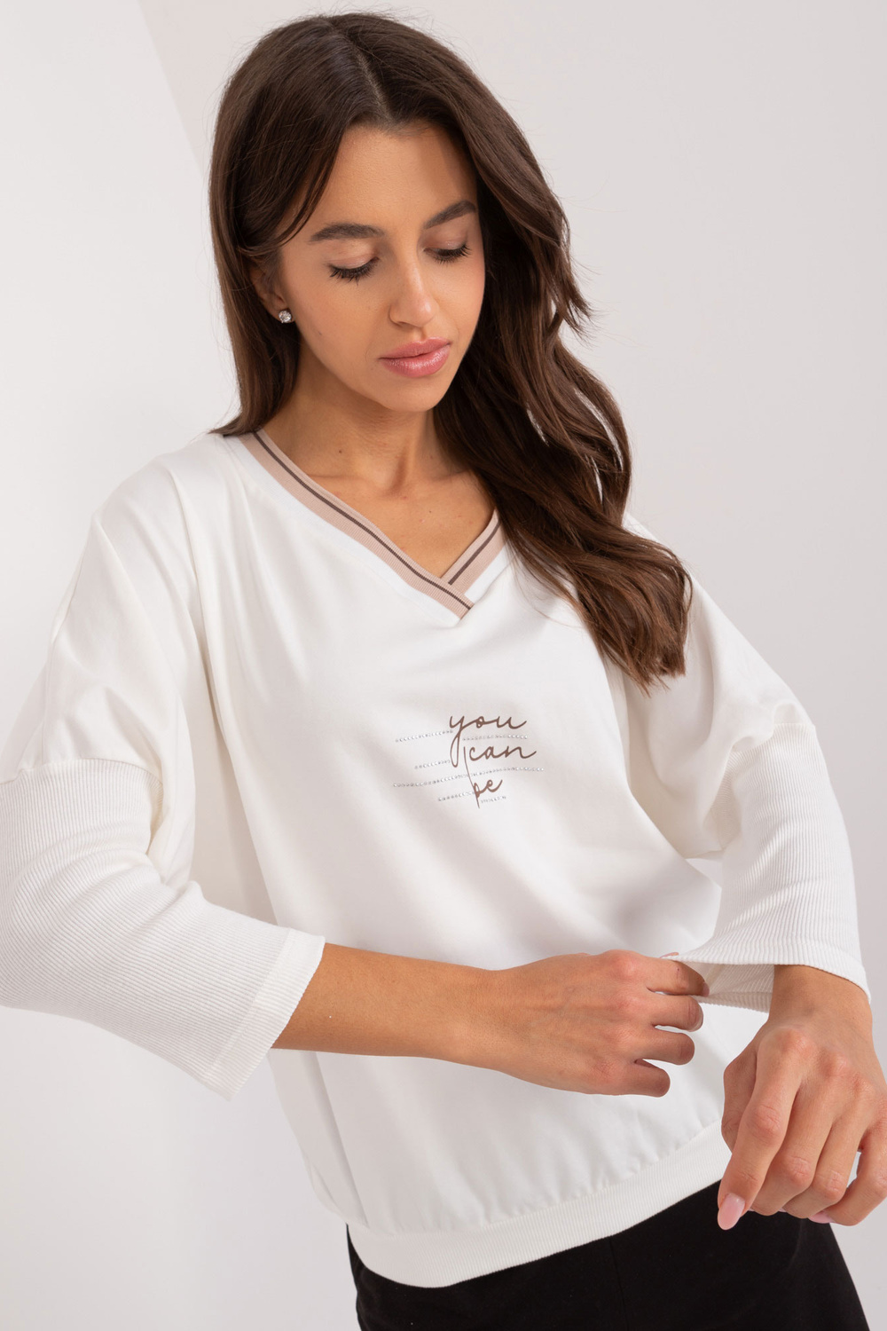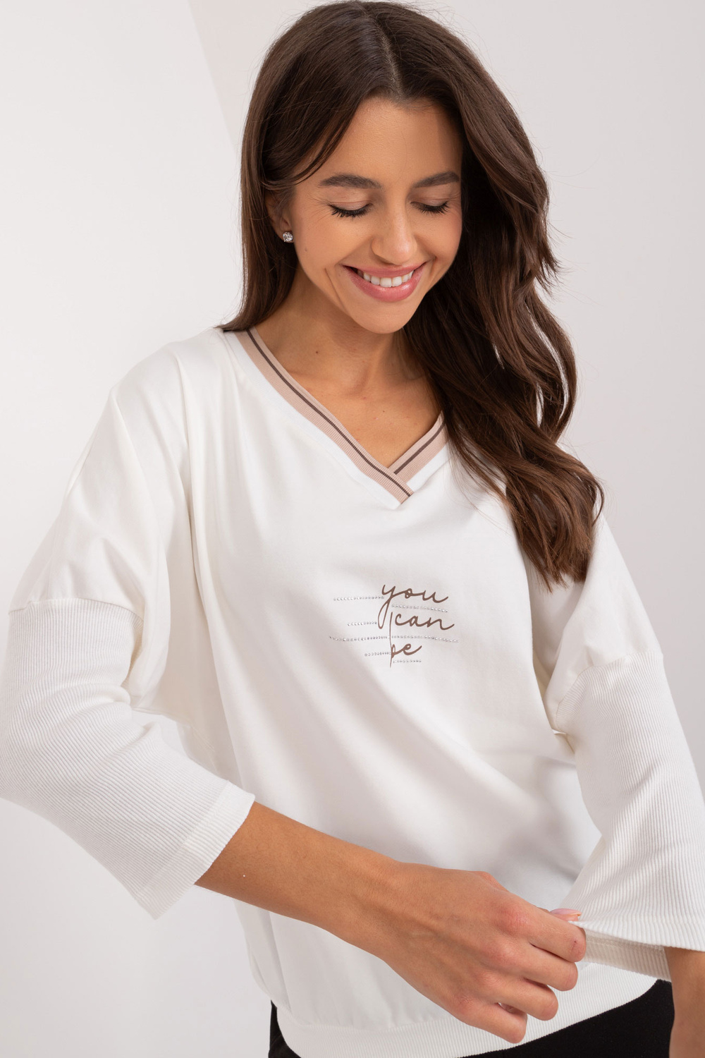 Vienizmēra blūzes izmēri mērīti plakaniski: paduses platums - 69 cm, piedurknes garums - 44 cm, kopējais garums - 61 cm.