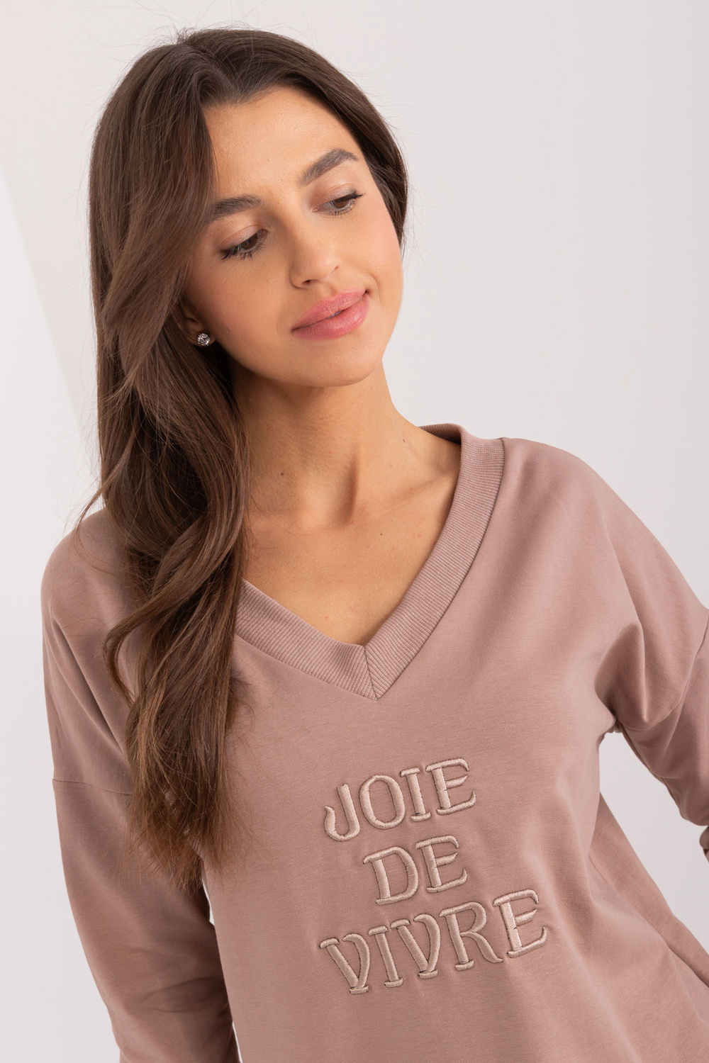 Džempera izmēri viena izmēra izmērā, mērot plakani: paduses platums - 53 cm, kopējais garums - 59 cm, piedurknes garums - 41 cm