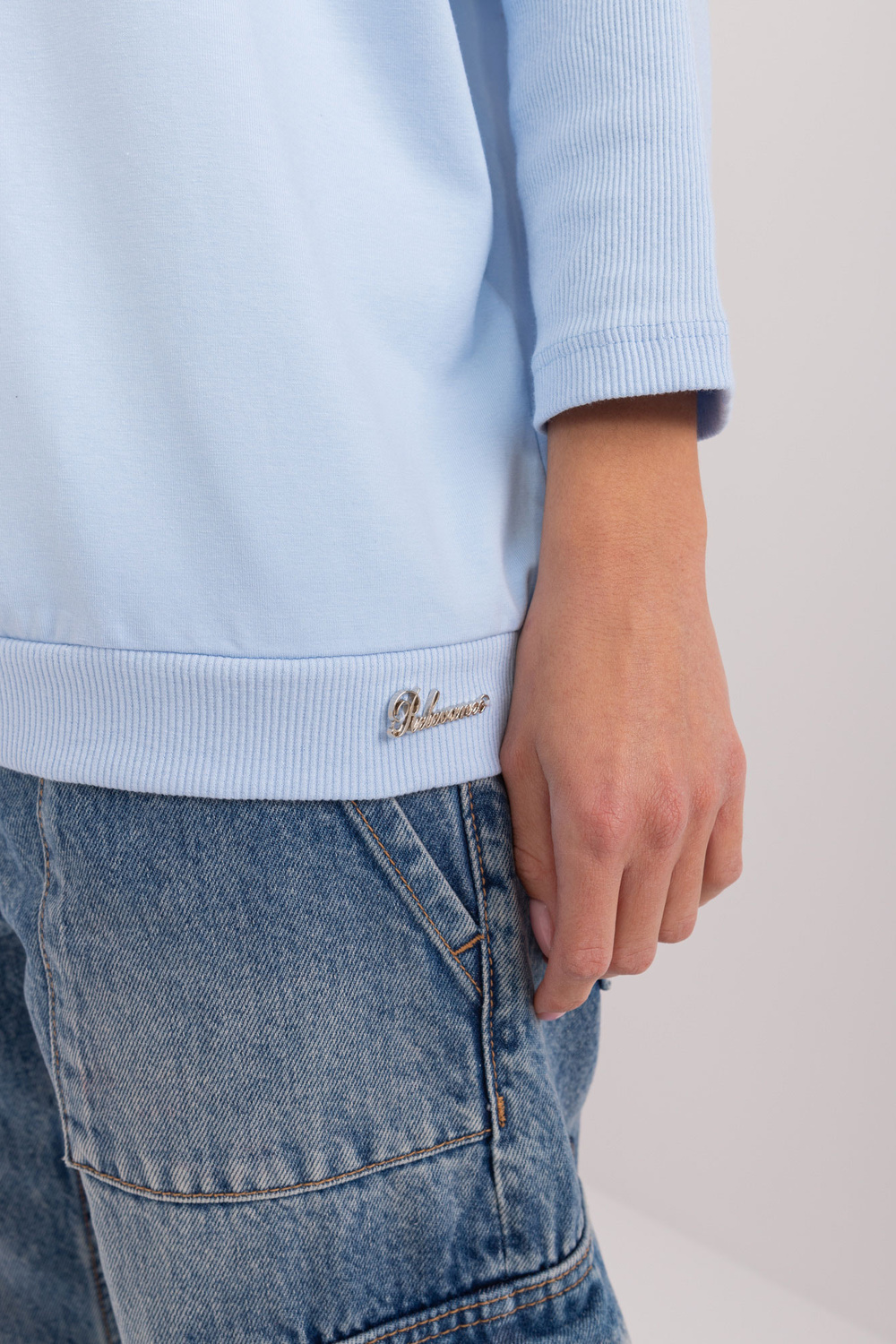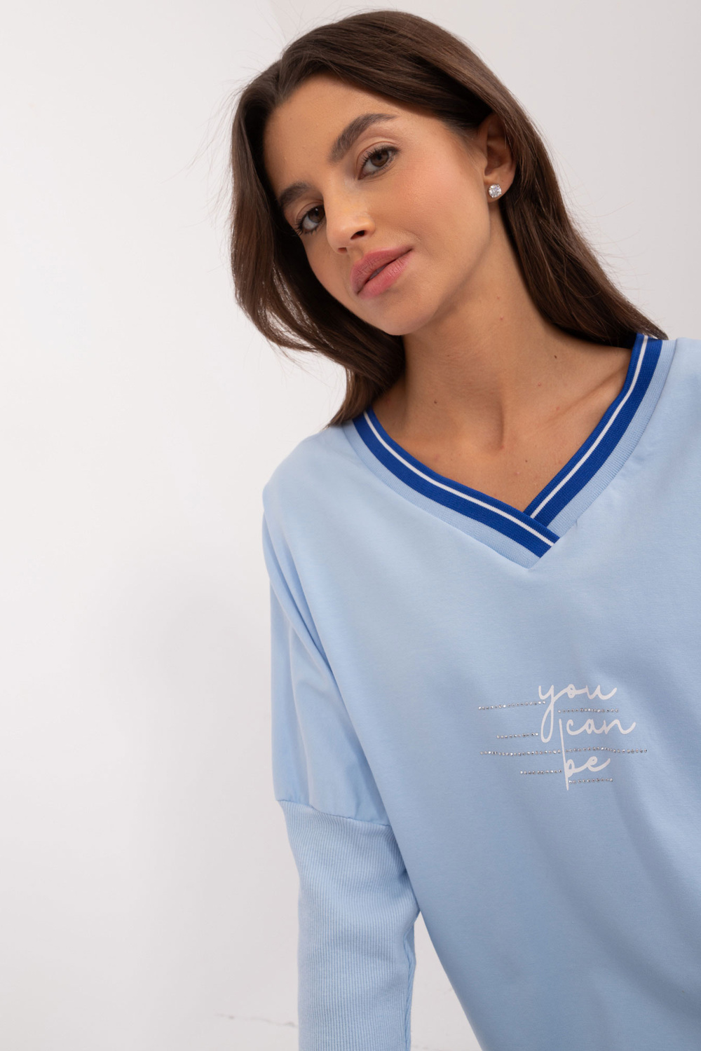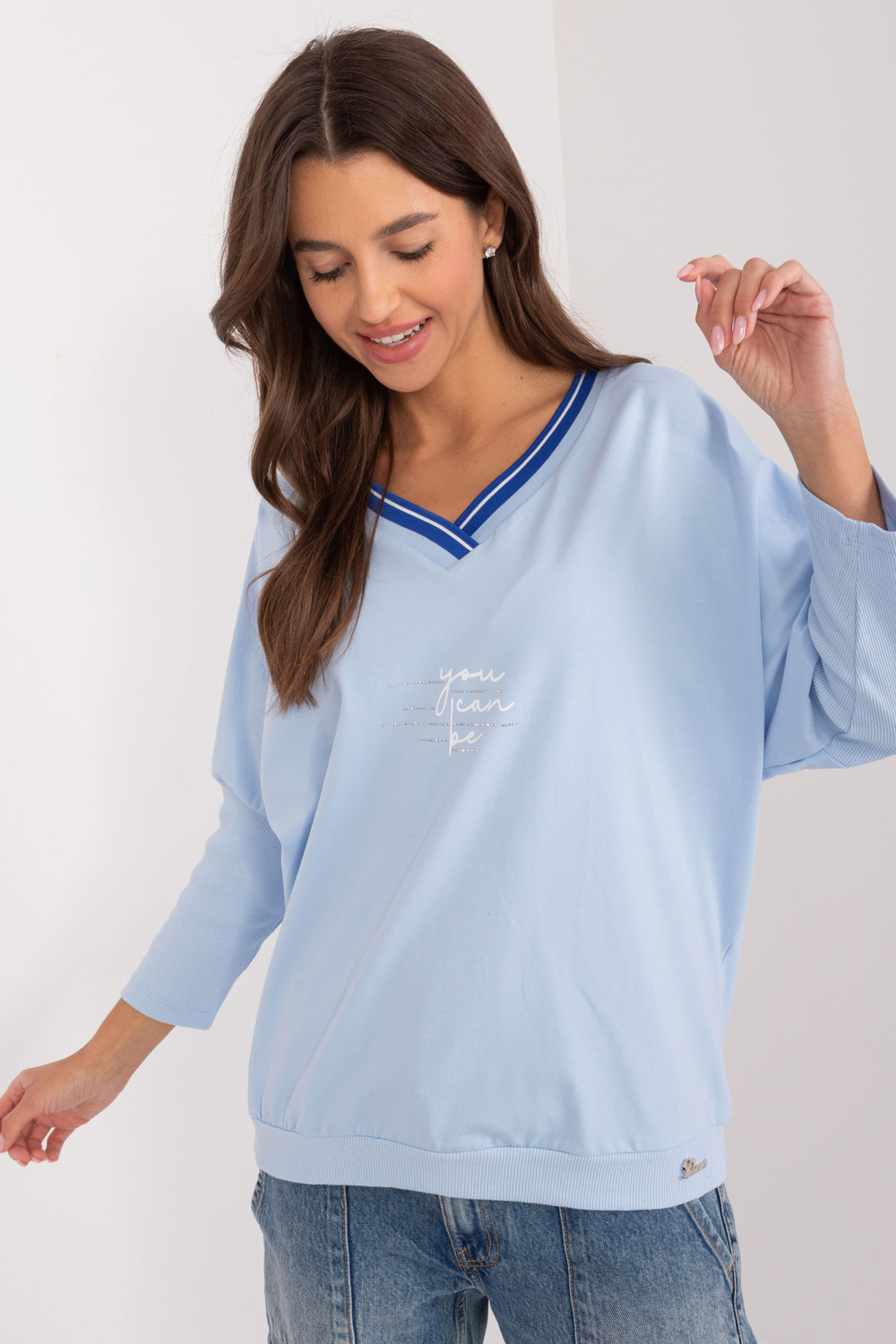 Vienizmēra blūzes izmēri mērīti plakaniski: paduses platums - 69 cm, piedurknes garums - 44 cm, kopējais garums - 61 cm.