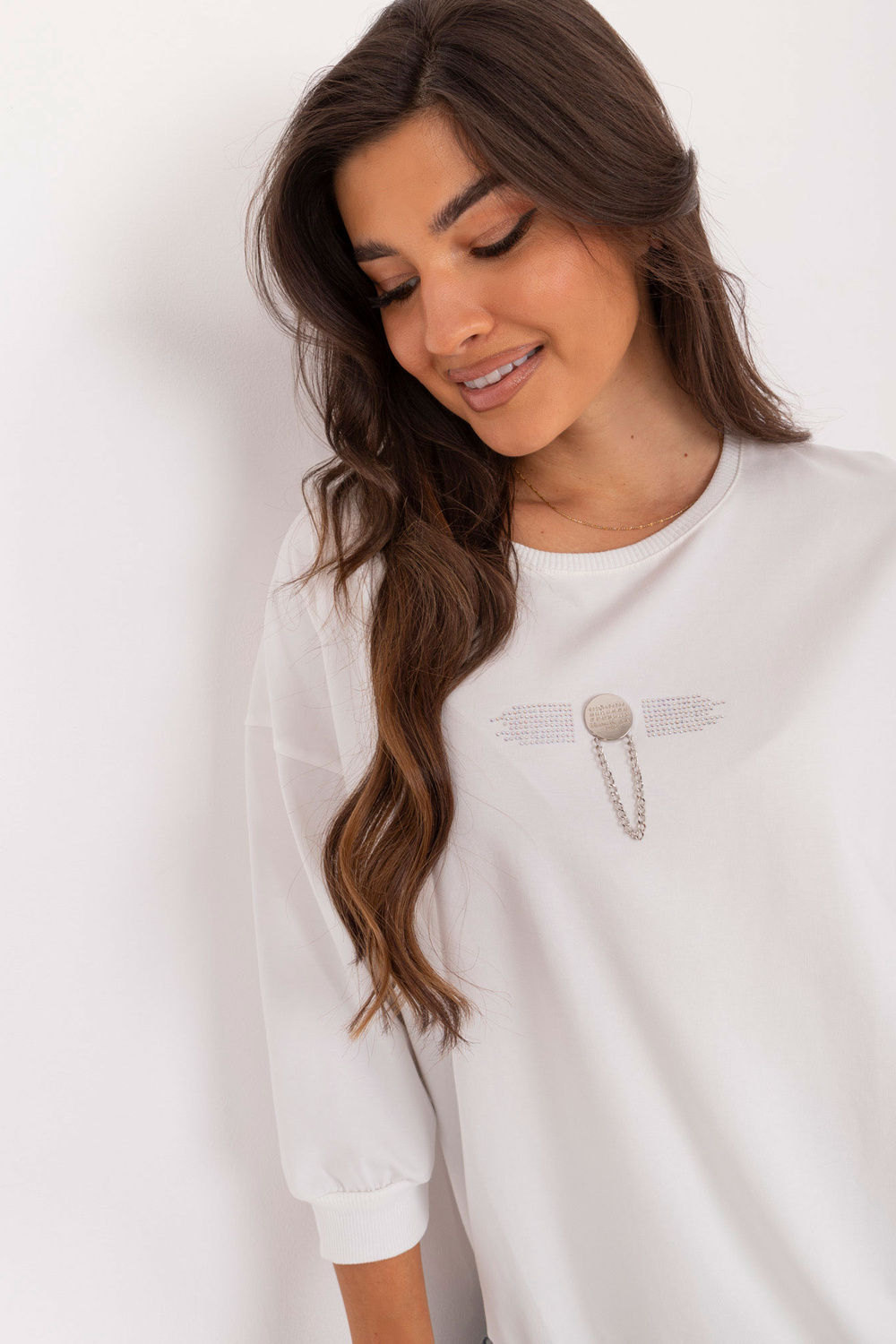 Viena izmēra blūzes izmēri mērīti plakaniski: blūzes platums zem padusēm - 59 cm, piedurknes garums - 44 cm, kopējais garums - 58 cm.