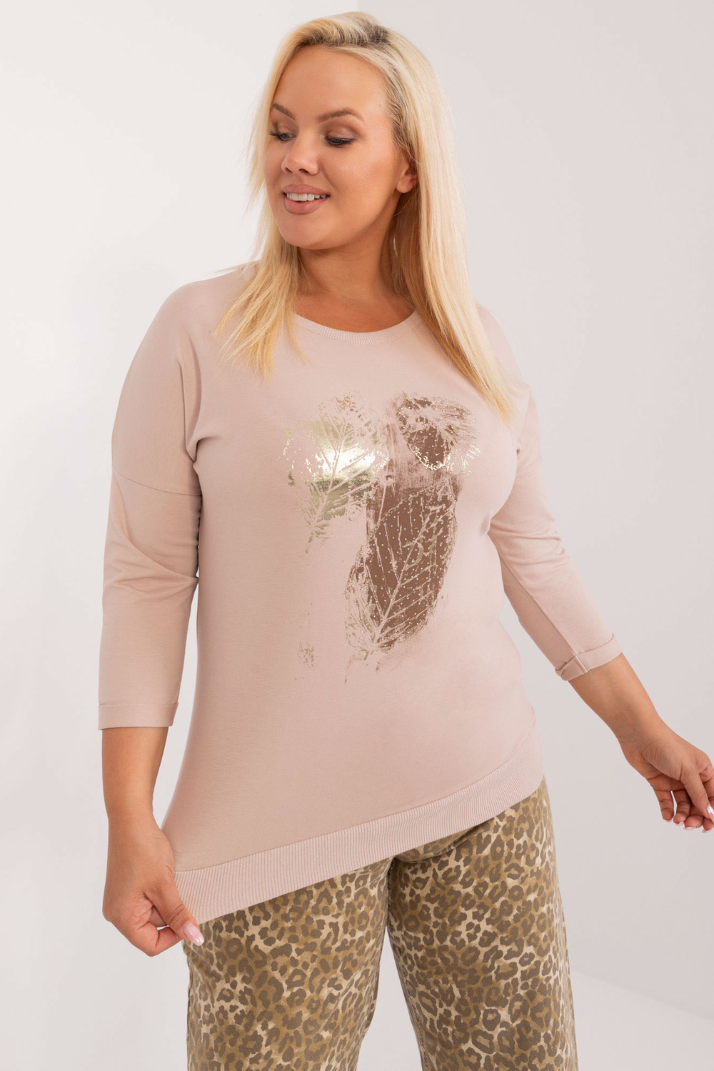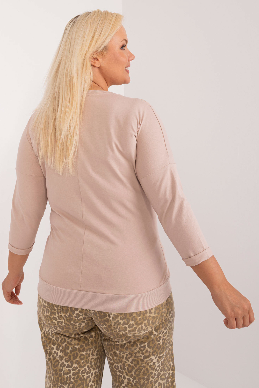 Vienizmēra blūzes izmēri mērīti plakani: paduses platums - 58 cm, piedurknes garums - 42 cm, kopējais garums - 64 cm.