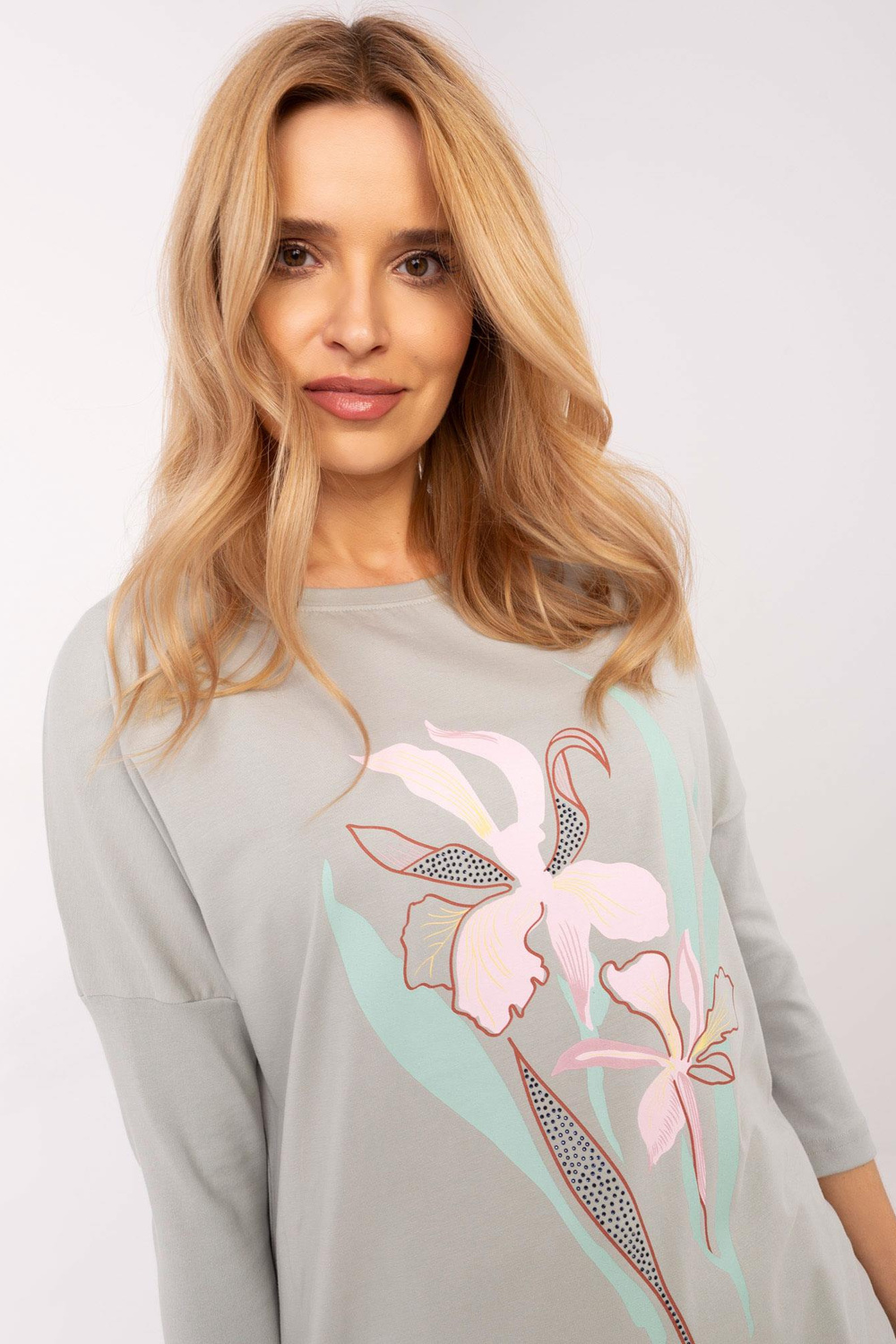 Blūzes izmēri viena izmēra izmērā mērot plakanu: platums padusēm - 58 cm, piedurknes garums - 27 cm (no šuves), kopējais garums - 79 cm - 5 cm.