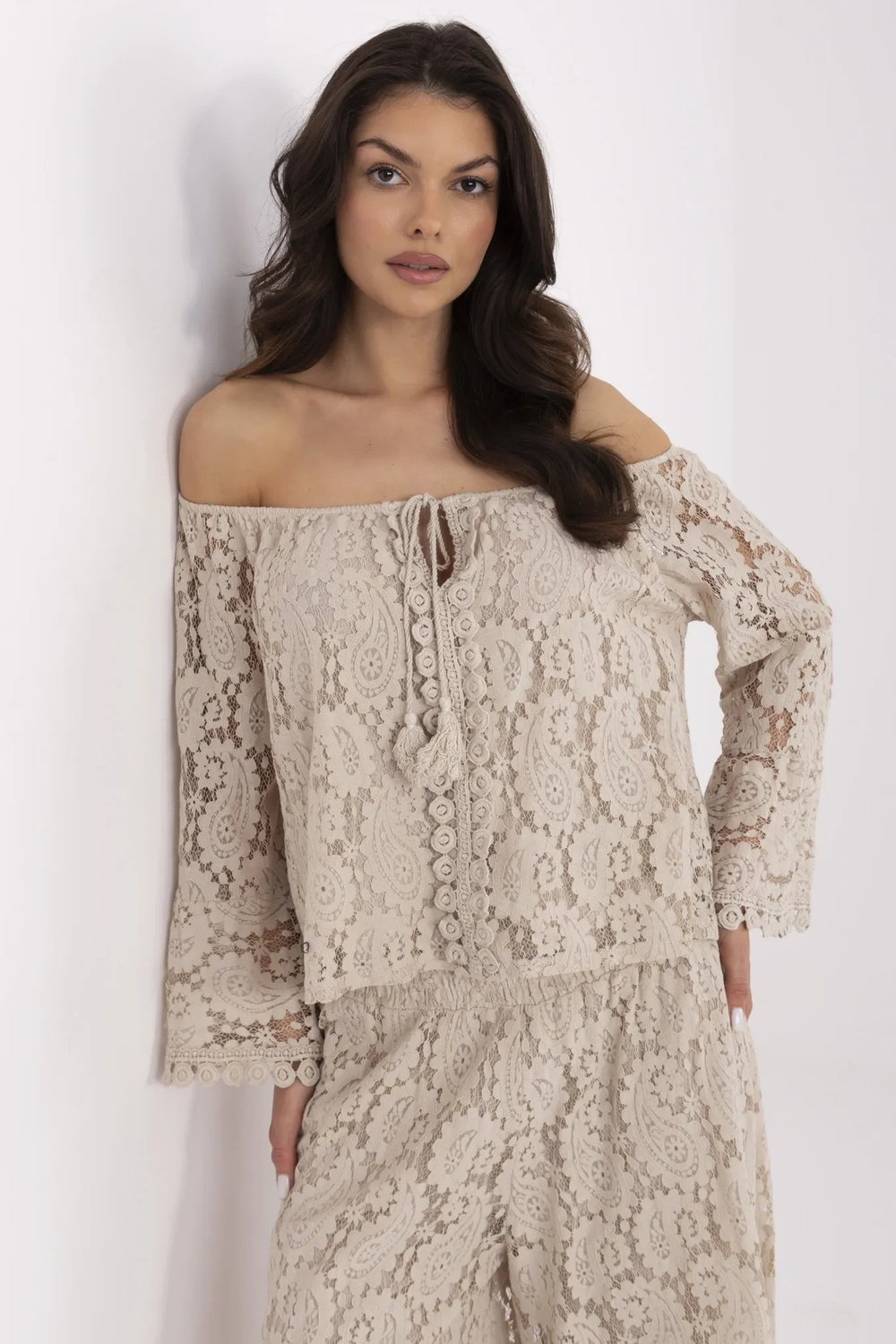Blūzes izmēri viena izmēra izmērā mērot plakanā: platums padusēm - 54 cm, piedurknes garums - 50 cm (no šuves), gurnu platums - 6p5 cm0, kopējais garums - 6p> 5 cm.