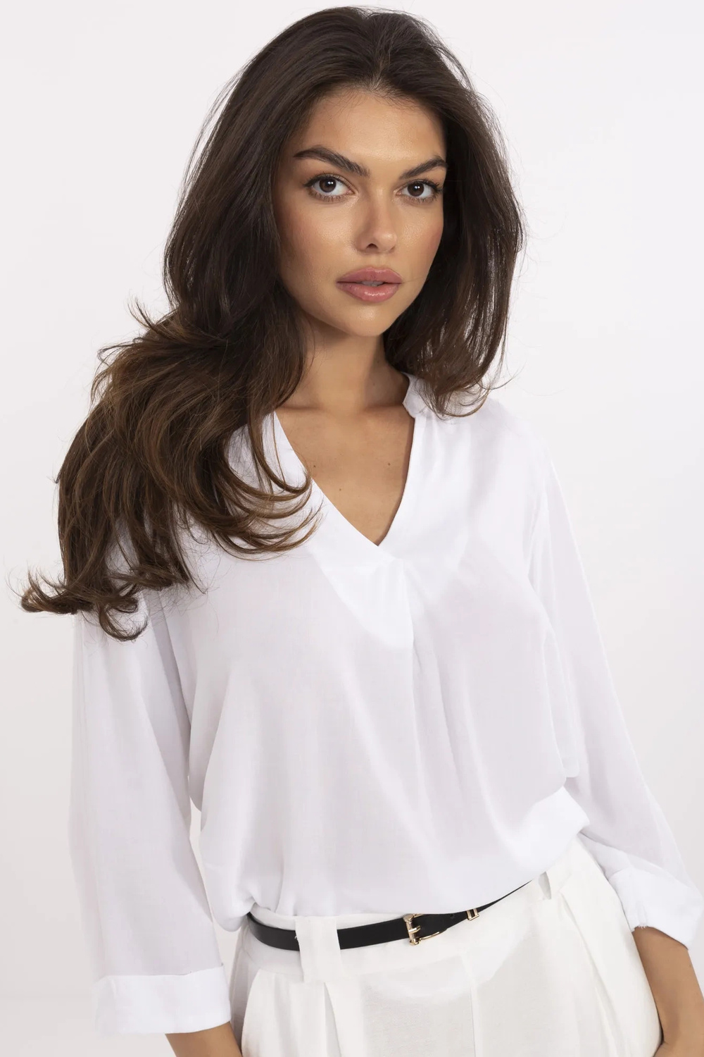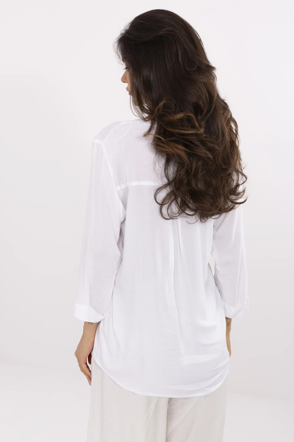 Blūzes izmēri vienā izmērā, mērot plakaniski: platums zem padusēm - 56 cm, piedurknes garums - 46 cm (no vīles), kopējais garums - 68 cm (priekšpusē), kopējais garums - 72 cm (aizmugurē), gurnu platums - 59 cm.