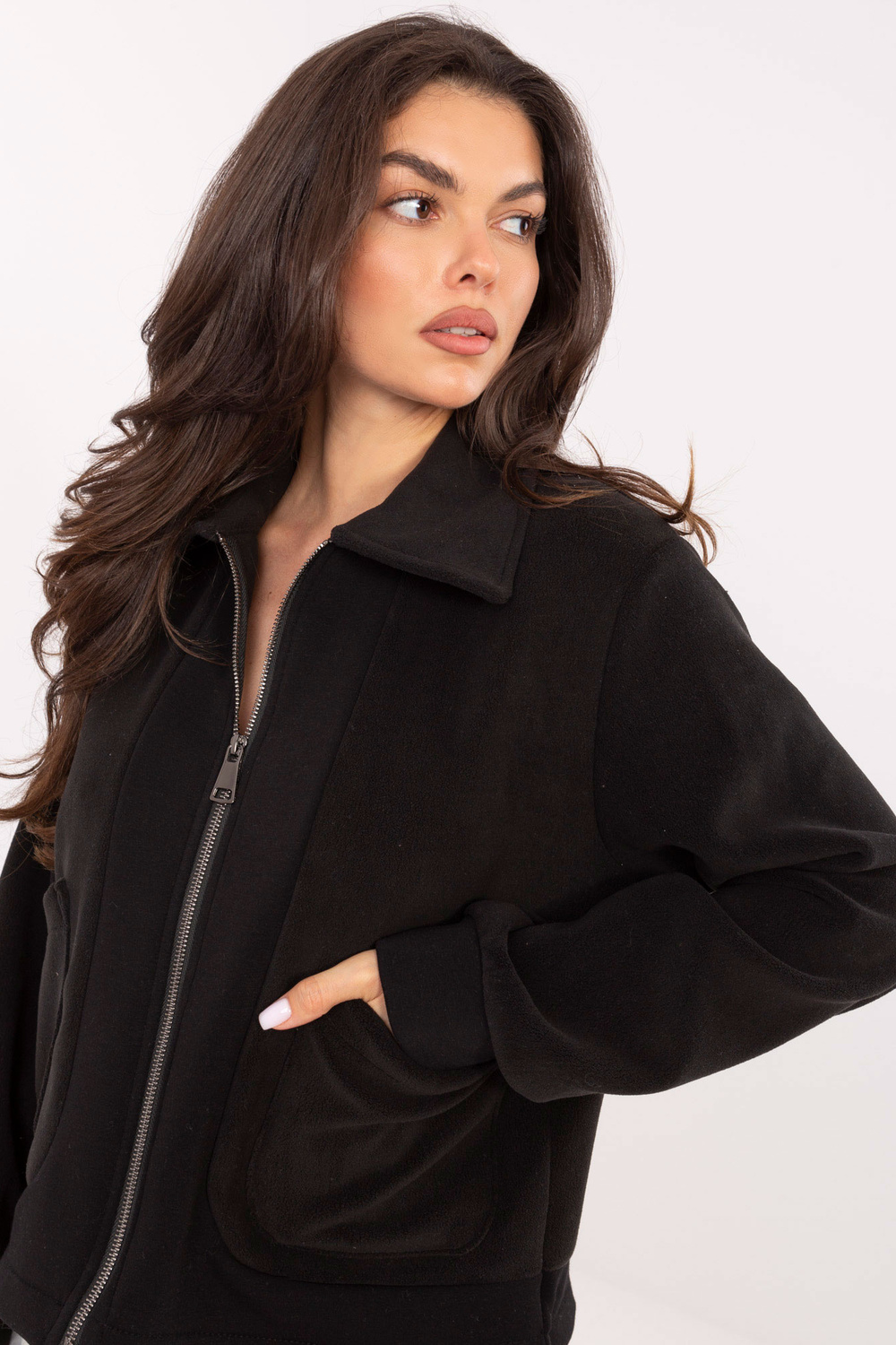 Modelis valkā „one size" izmēru. Modeļa izmēri: augums 173 cm, krūtis 85 cm, viduklis 62 cm, gurni 95 cm.