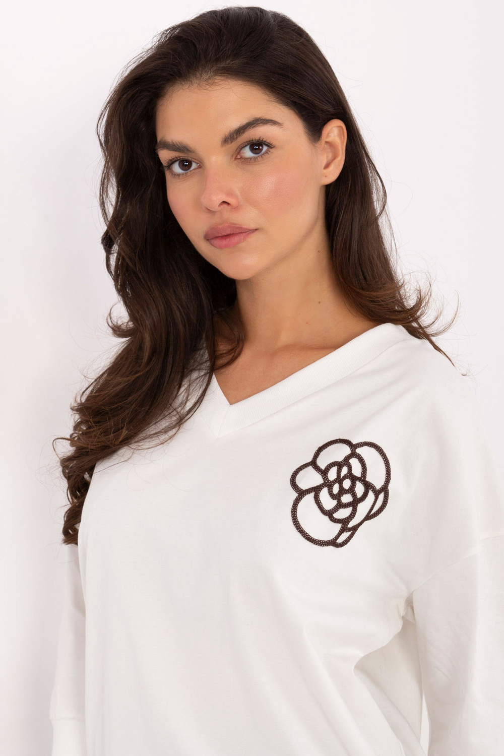 Krekla izmēri viena izmēra apģērbā, mērīti novietojot to plakanu: platums zem padusēm - 61 cm, piedurknes garums - 33 cm (no šuves), platums pie gurniem - 43 cm, kopējais garums - 64 cm.