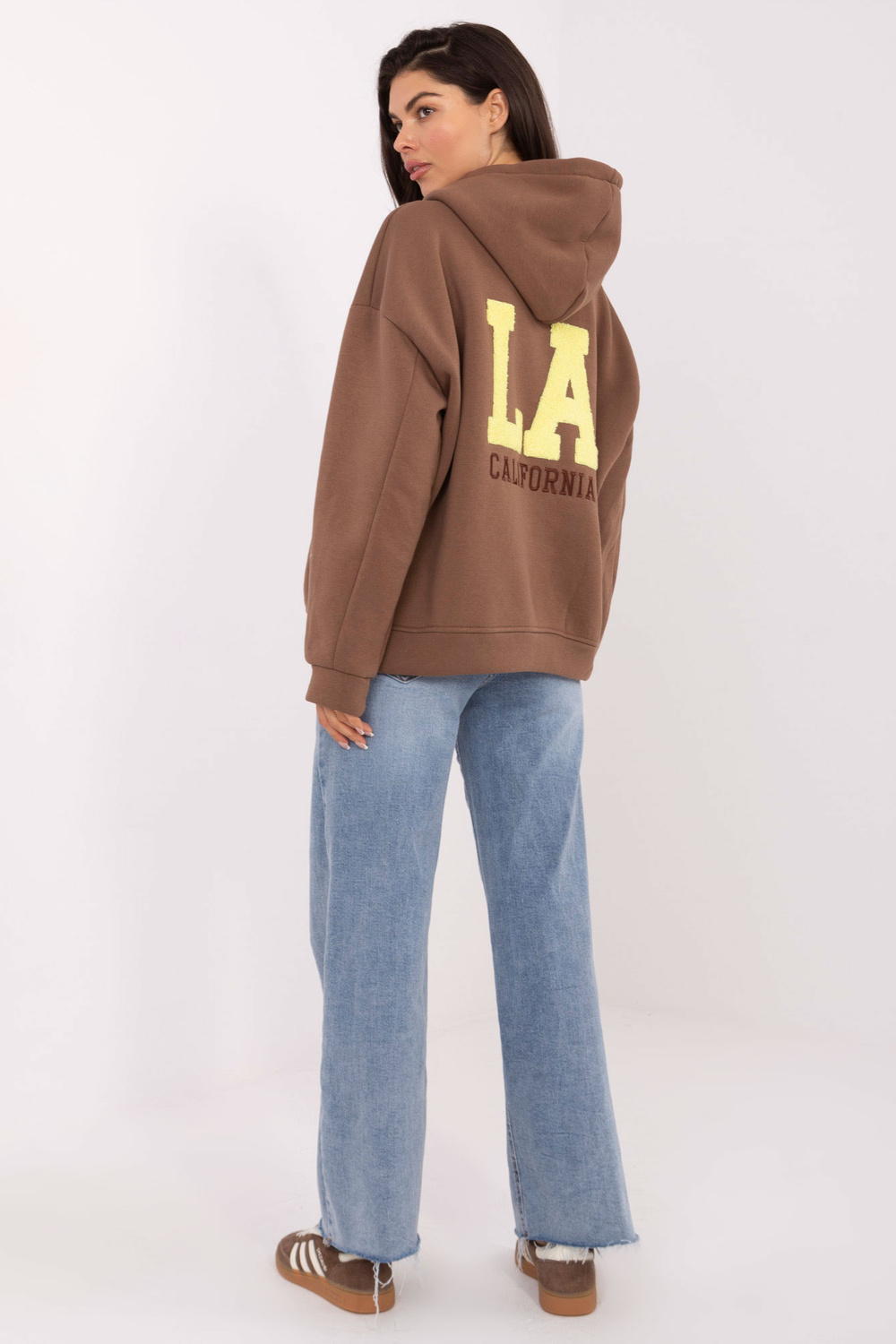 Džempera izmēri one size, mērīti izlīdzināti: platums zem padusēm - 74 cm, piedurknes garums - 52 cm (no šuves), platums gurnu daļā - 64 cm, kopējais garums - 67 cm.