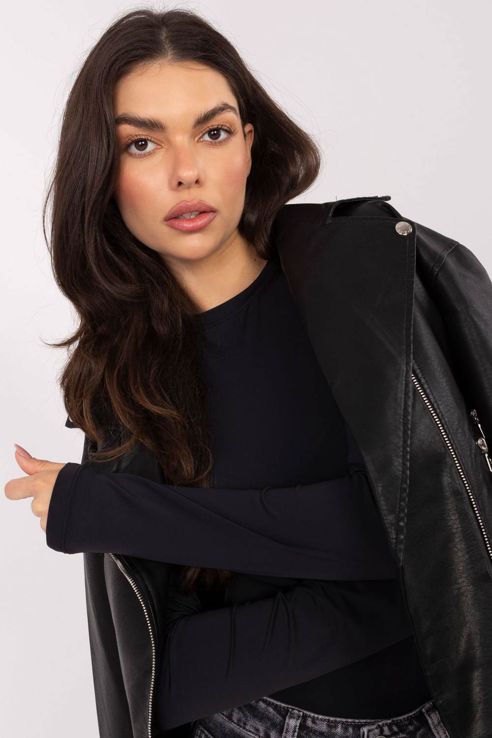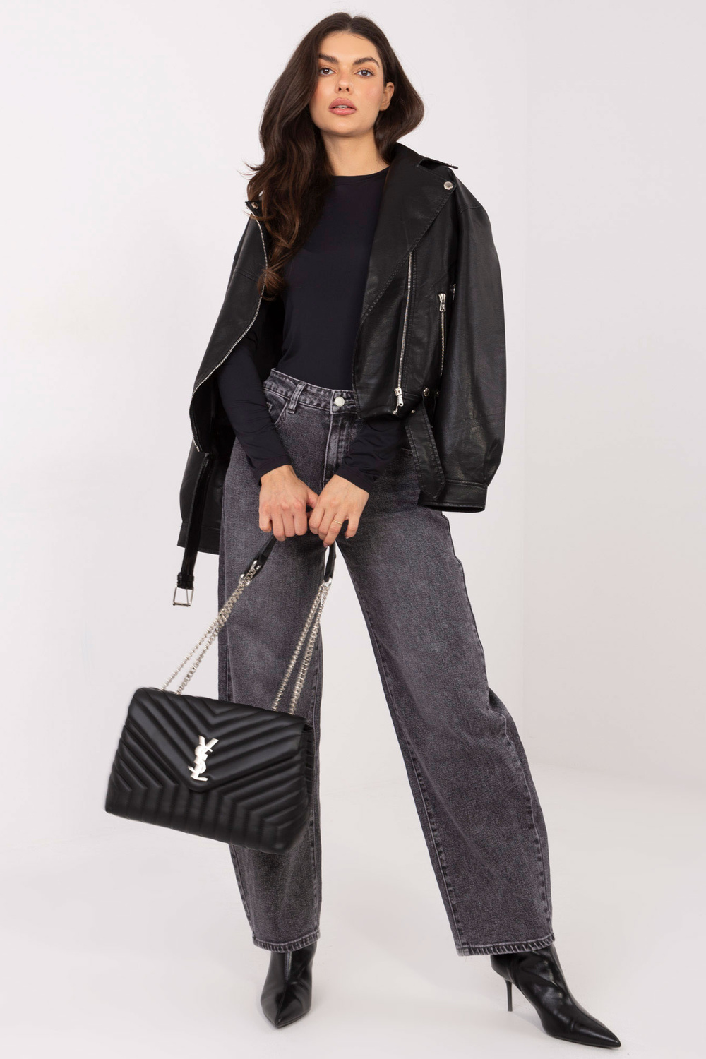 Modelis valkā S izmēru. Modeļa izmēri: augums 173 cm, krūtis 85 cm, viduklis 62 cm, gurni 95 cm.