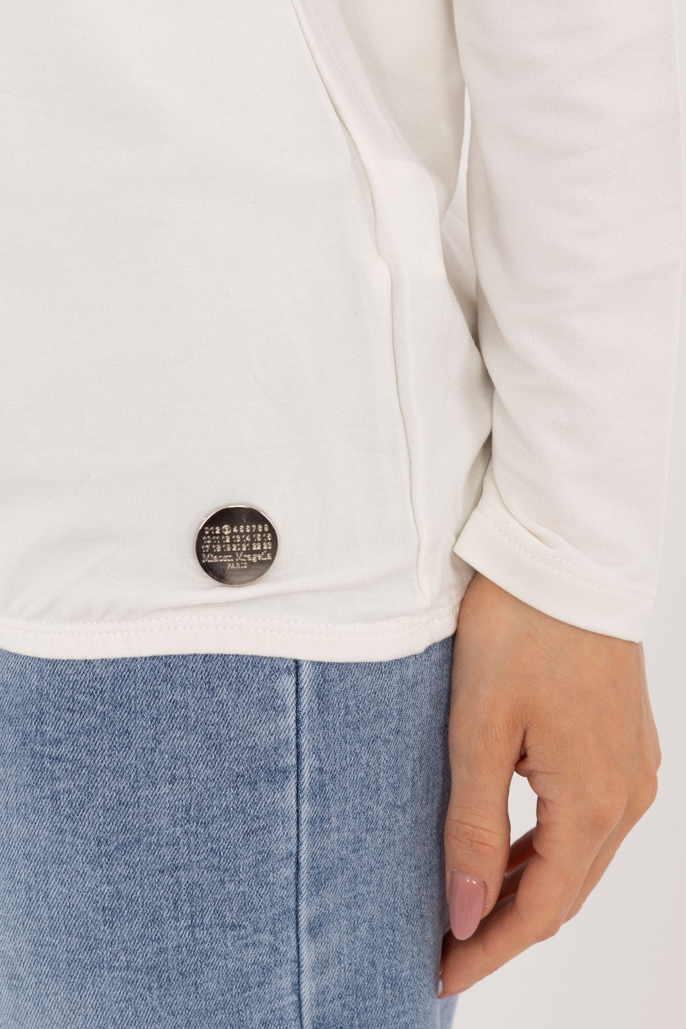 Modelis valkā viena izmēra apģērbu. Modeļa izmēri: augums 173 cm, krūtis 85 cm, viduklis 62 cm, gurni 95 cm.