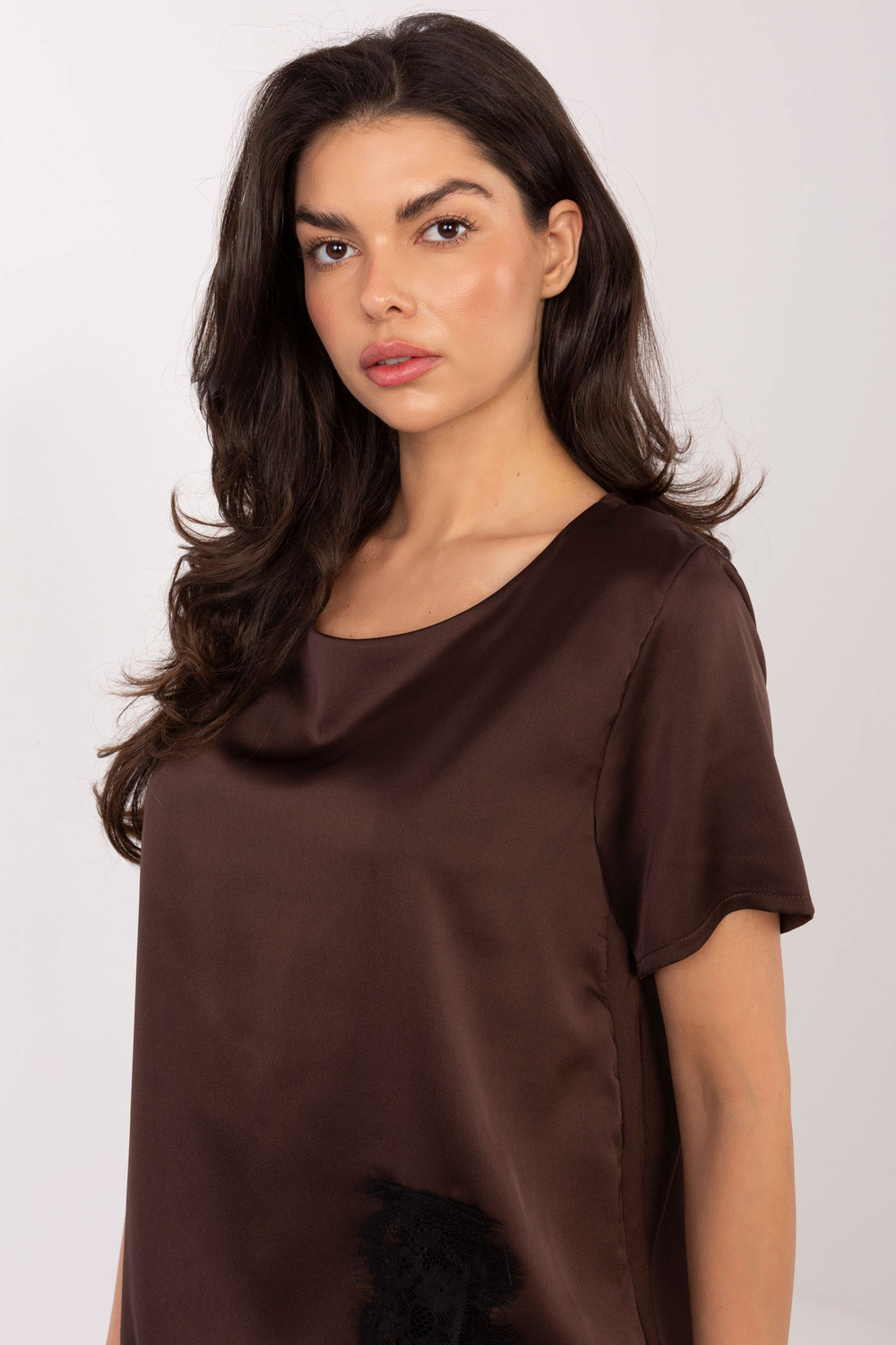 Viena izmēra blūzes izmēri mērīti izstieptā stāvoklī: platums zem padusēm – 52 cm, kopējais garums – 67 cm, platums gurnu daļā – 56 cm, piedurknes garums – 21 cm.