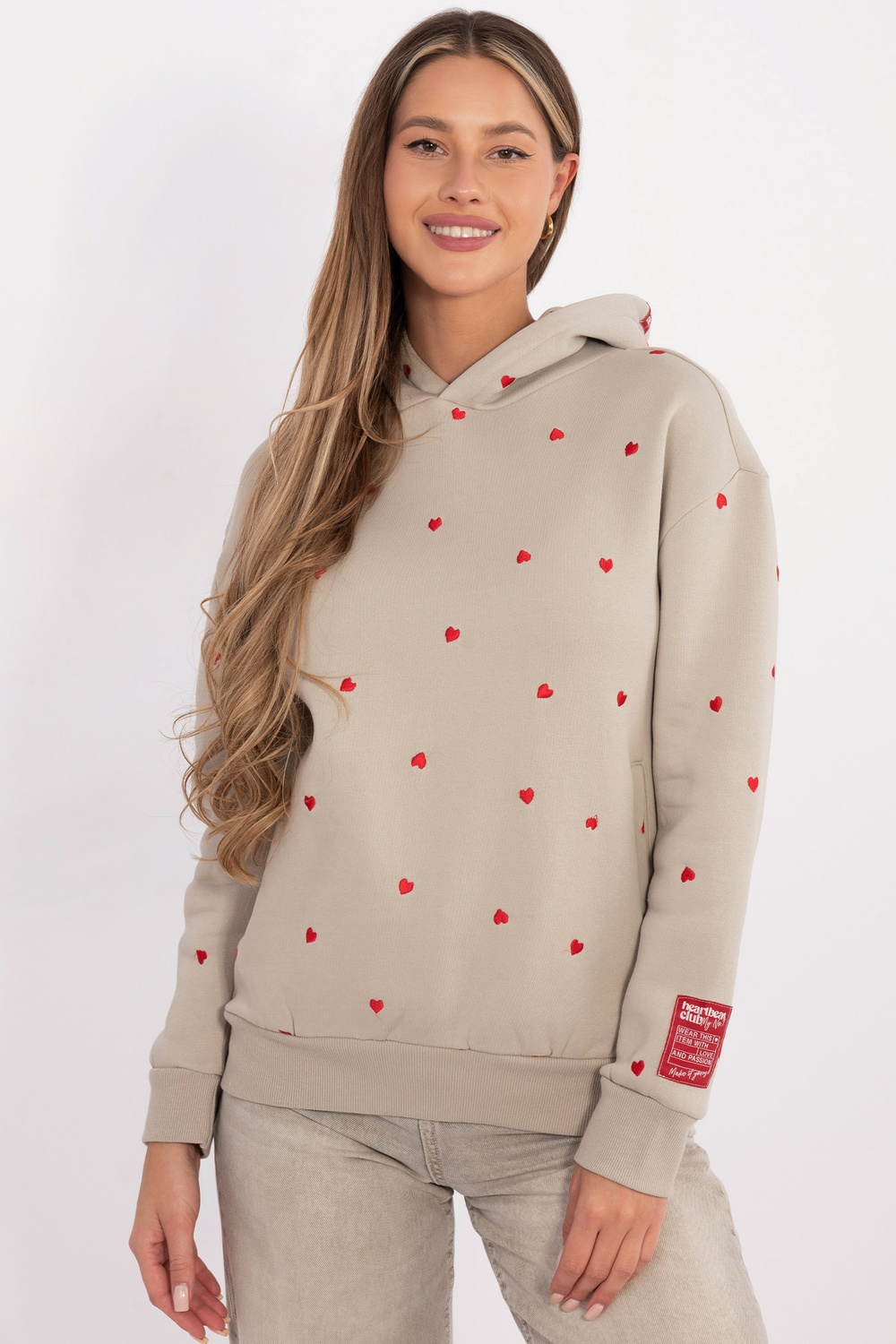 S izmēra džempera izmēri, mērīti plakaniski: platums padusēs – 56 cm, piedurknes garums – 55 cm, platums gurnos – 44 cm, kopējais garums – 65 cm