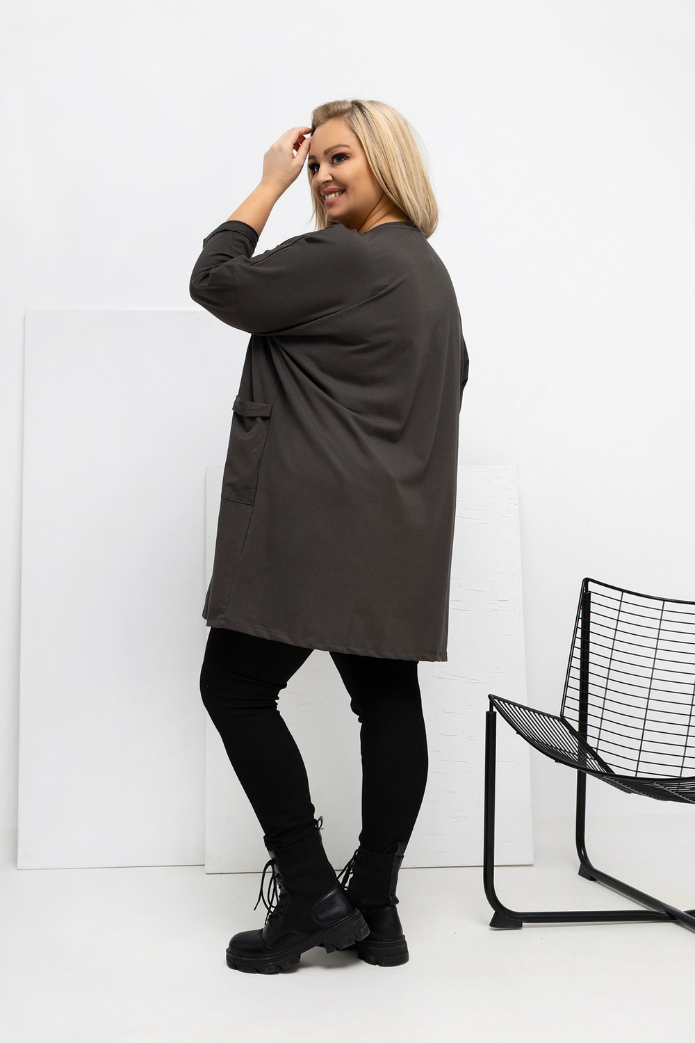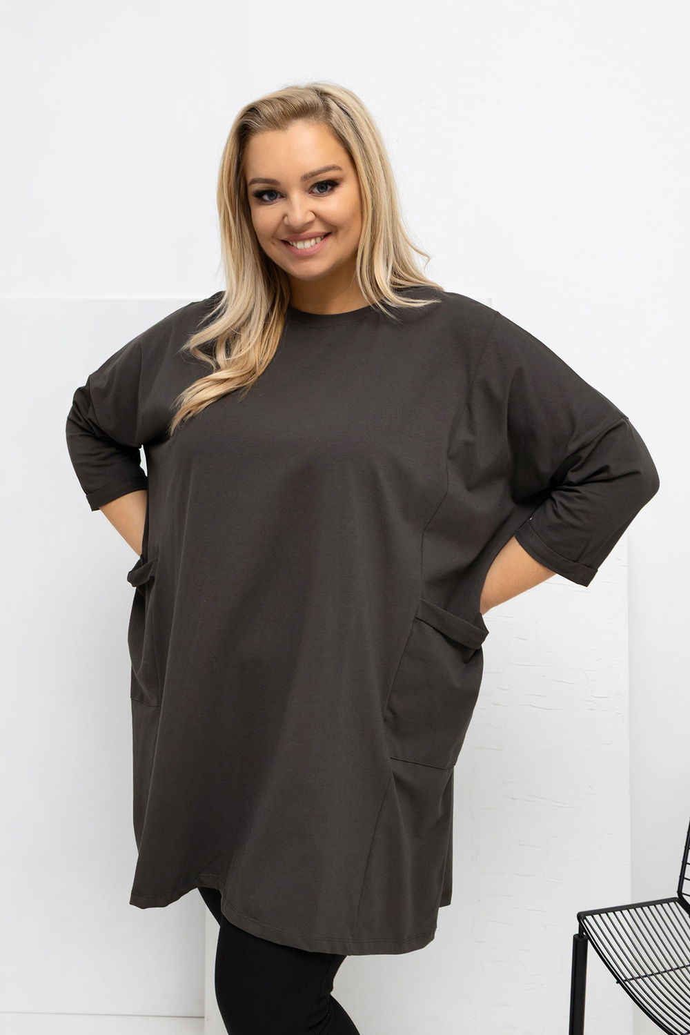 Vienas izmēra blūzes izmēri, mērīti izstiepti: platums zem padusēm - 83 cm, apakšas platums - 79 cm, piedurknes garums - 44 cm, kopējais garums - 87 cm.
