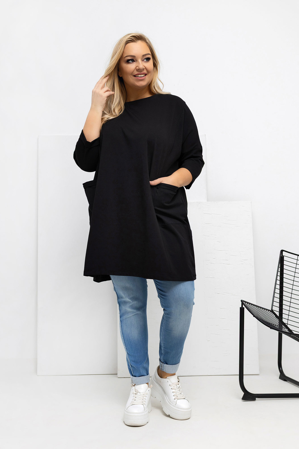 Vienas izmēra blūzes izmēri, mērīti guļus stāvoklī: platums zem padusēm - 83 cm, apakšējais platums - 79 cm, piedurknes garums - 44 cm, kopējais garums - 87 cm.