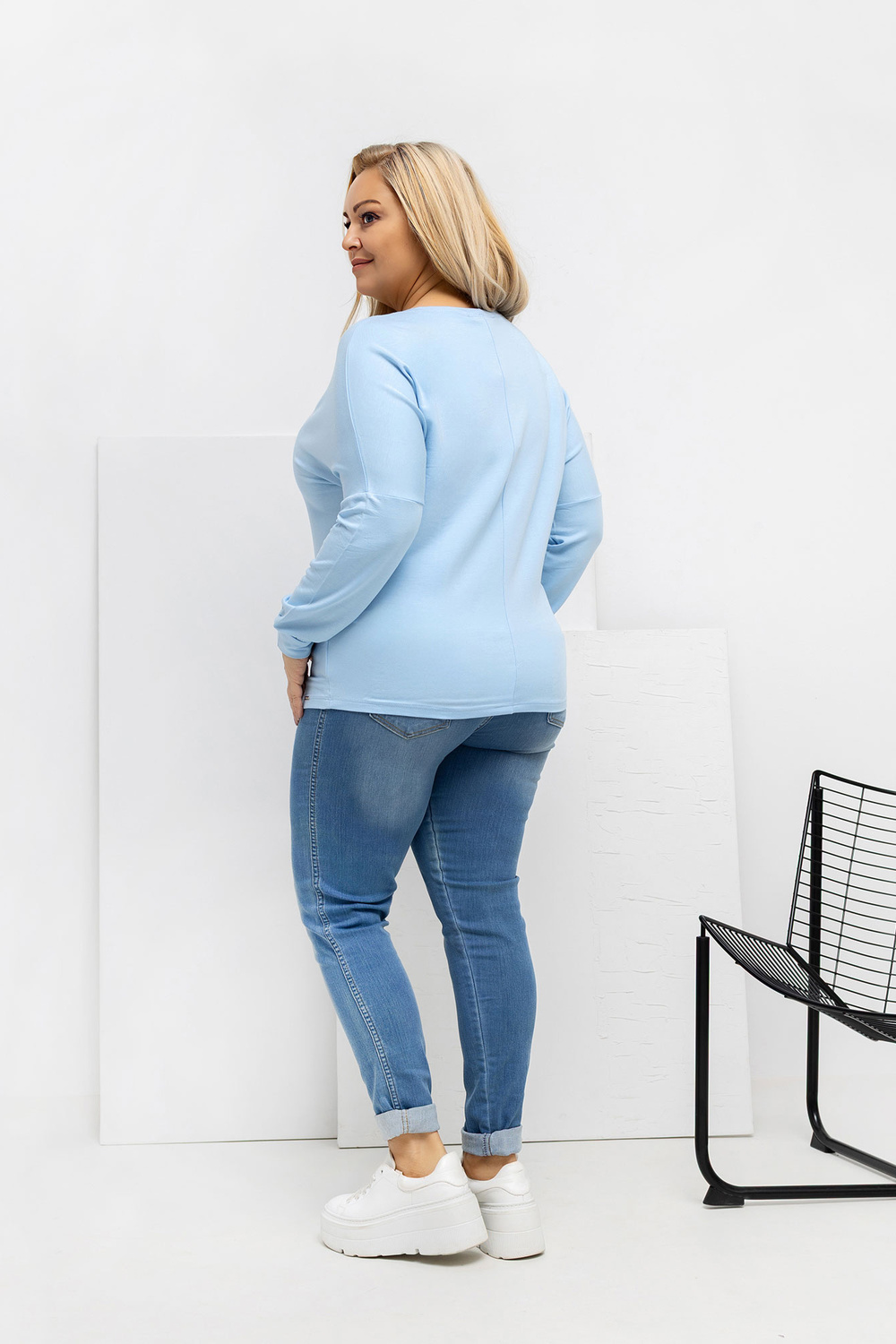 Vienas izmēra blūzes izmēri, mērīti uz gludas virsmas: platums zem padusēm – 65 cm, apakšējais platums – 51 cm, piedurknes garums – 35 cm (no šuves), kopējais garums – 67 cm.