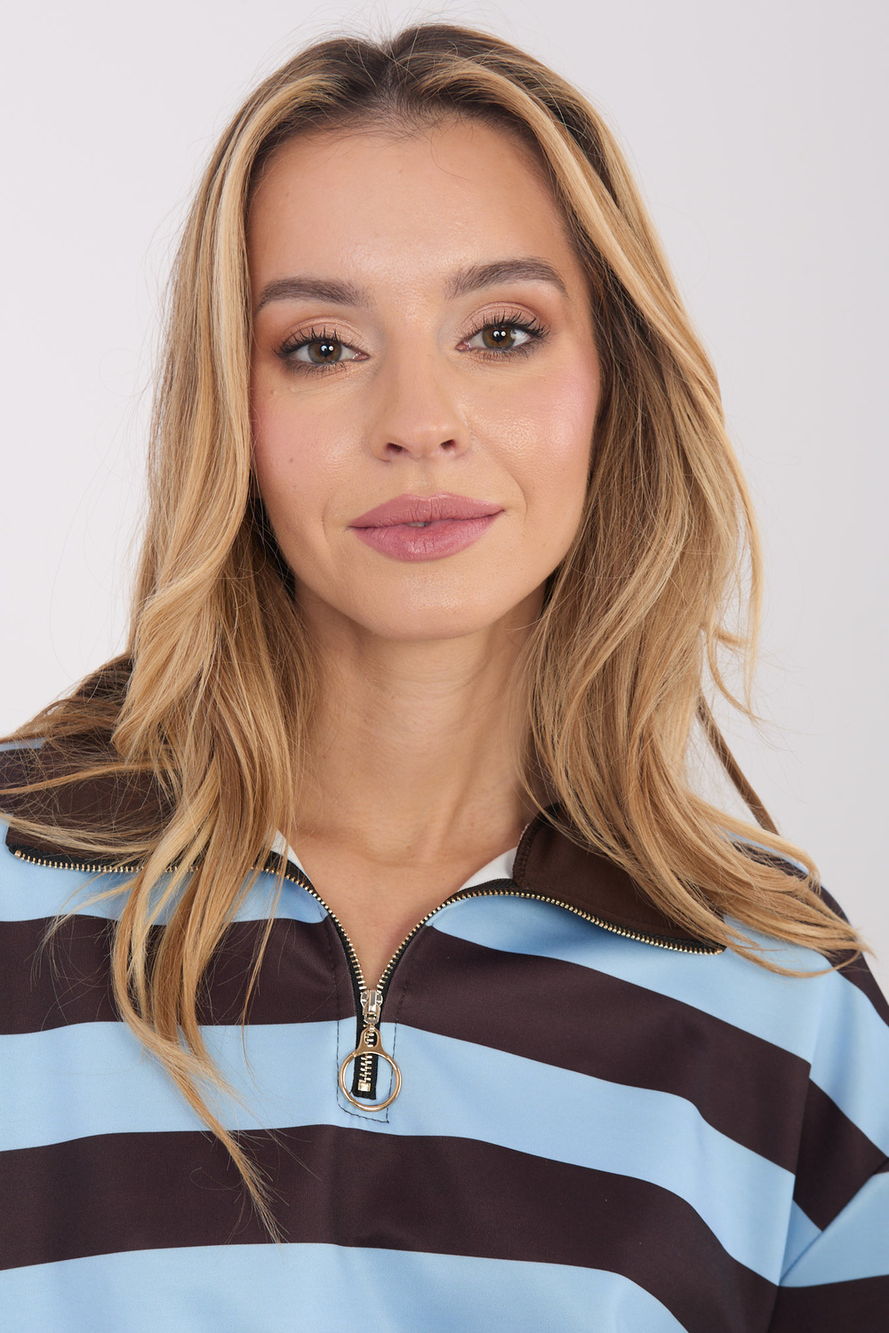 Modelis valkā viena izmēra apģērbu. Modeļa izmēri: augums 169 cm, krūtis 88 cm, viduklis 68 cm, gurni 89 cm.