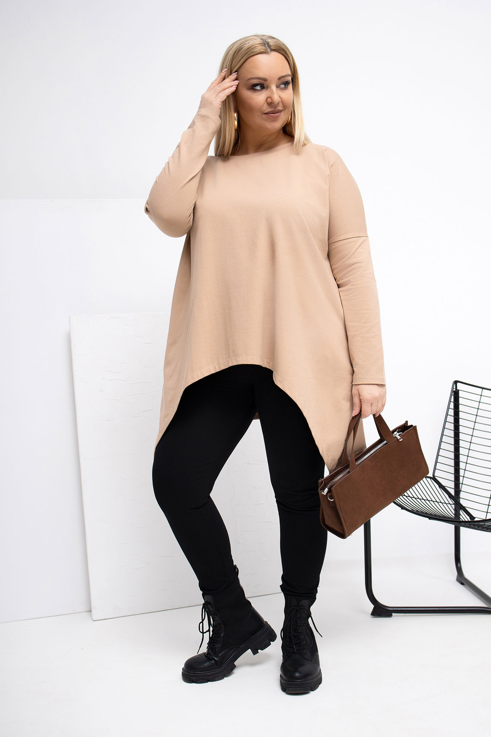 Modelis valkā vienu izmēru XL/2XL apģērbu. Modeļa izmēri: augums 167 cm, krūtis 118 cm, viduklis 90 cm, gurni 118 cm .