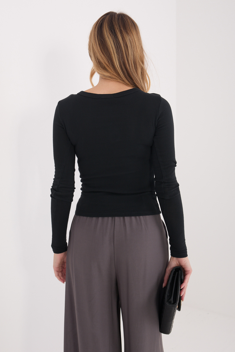 Vienas izmēra blūzes izmēri, mērot guļus: platums zem padusēm – 36 cm, kopējais garums – 56 cm, roku garums – 69 cm (no šuves), apakšmalas platums – 35 cm (audums elastīgs).