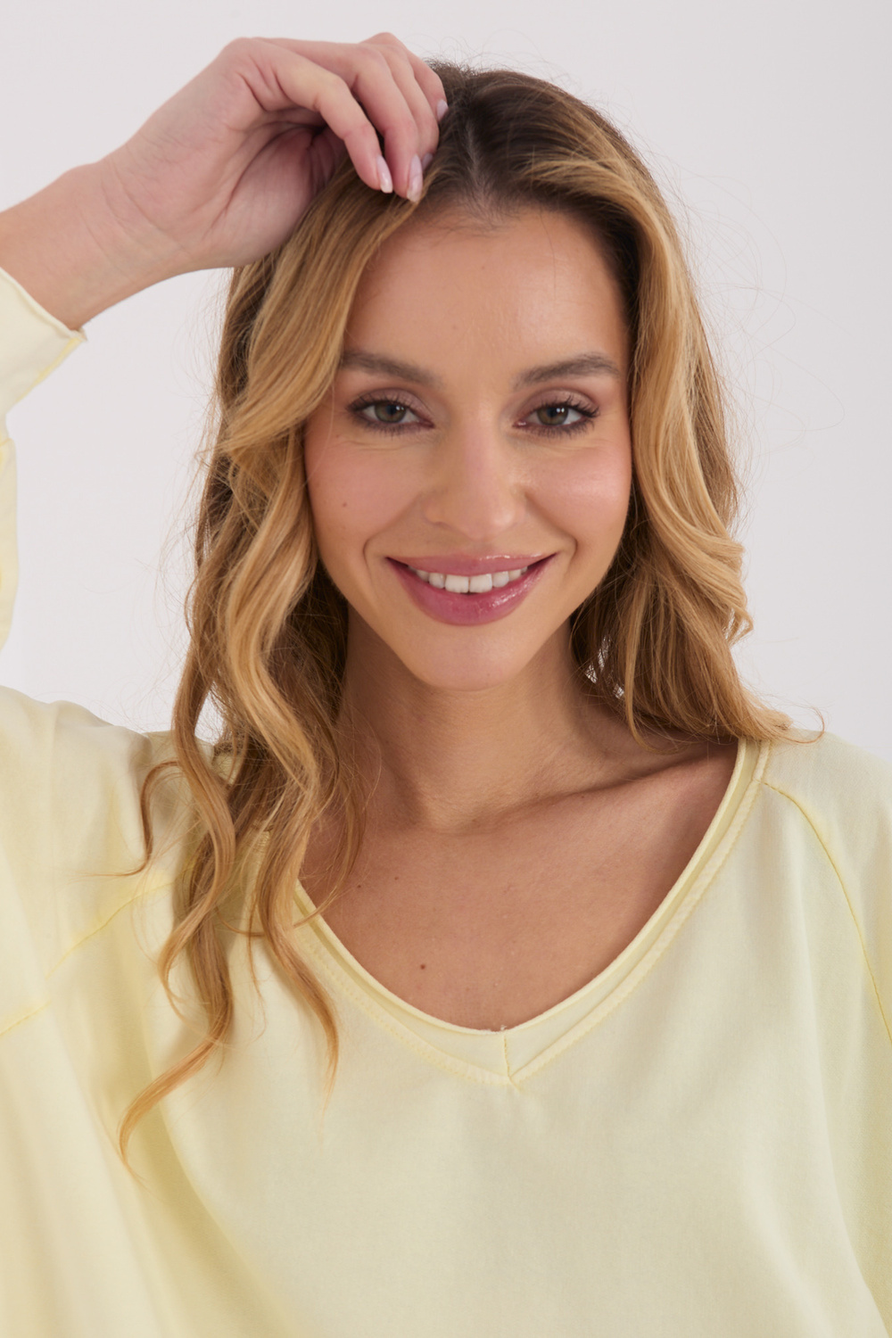 Modelis valkā viena izmēra apģērbu. Modeļa izmēri: augums 169 cm, krūtis 88 cm, viduklis 68 cm, gurni 89 cm.