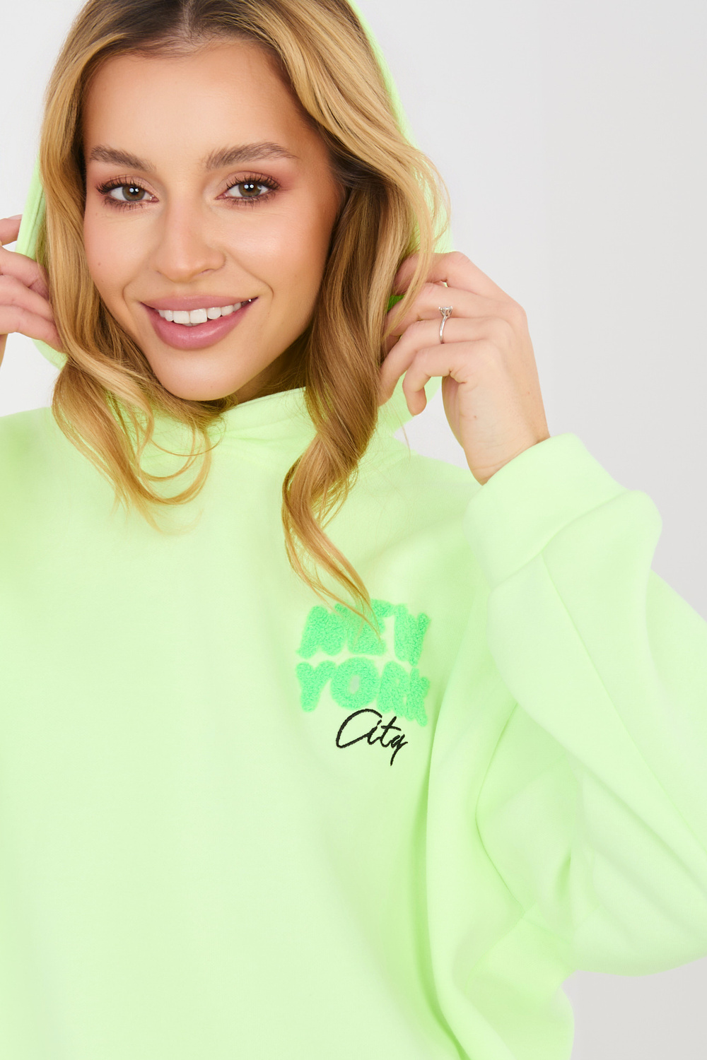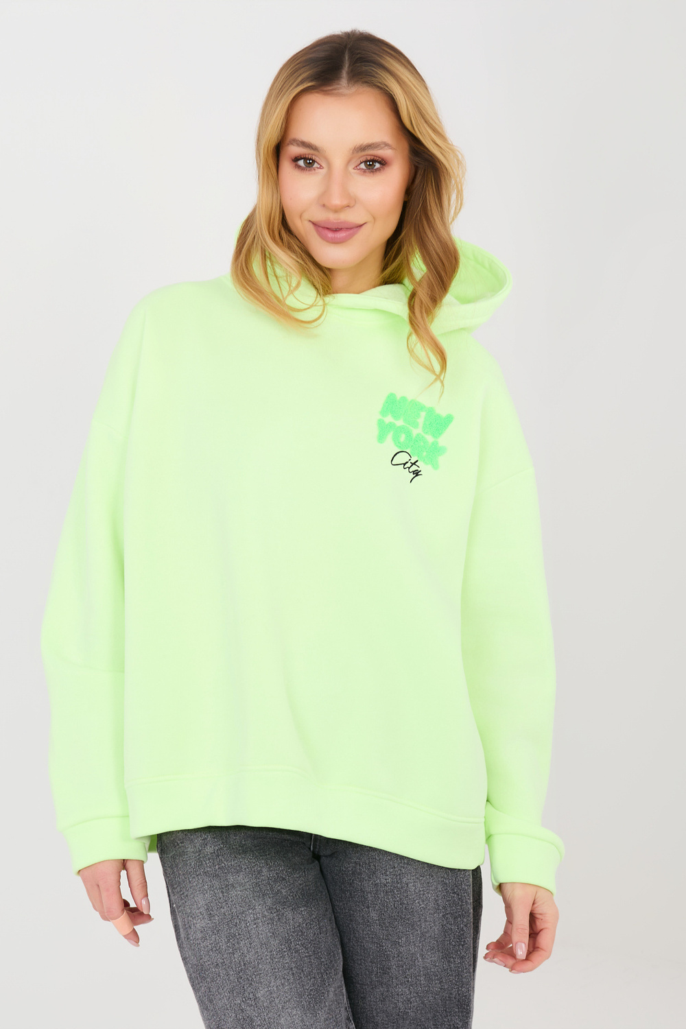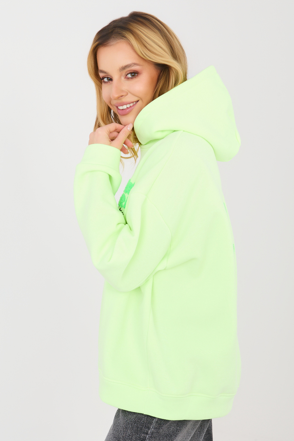 Modelis valkā viena izmēra apģērbu. Modeļa izmēri: augums 169 cm, krūtis 88 cm, viduklis 68 cm, gurni 89 cm .