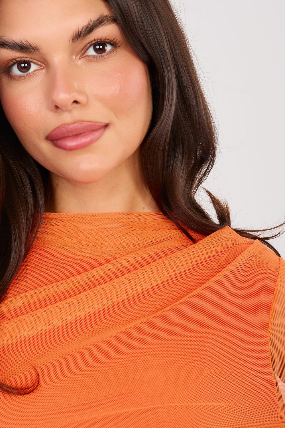 Modelis valkā vienas lieluma apģērbu. Modeļa izmēri: augums 173 cm, krūtis 85 cm, viduklis 62 cm, gurni 95 cm.