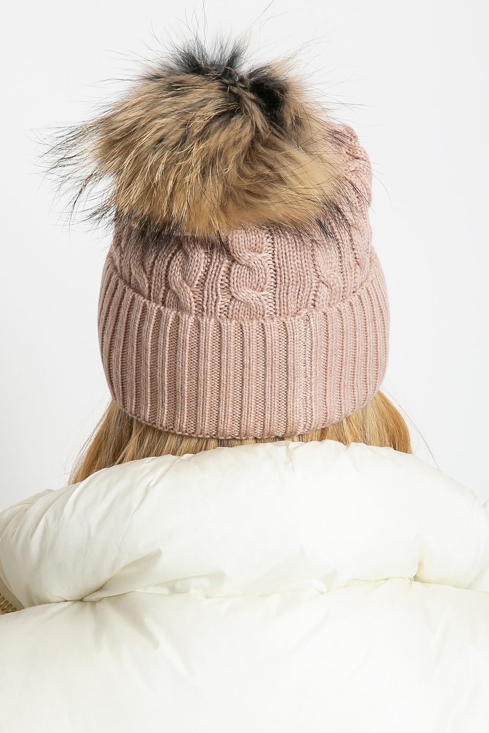 Netīri rozā cepure ar ribām un kažokādas pomponu