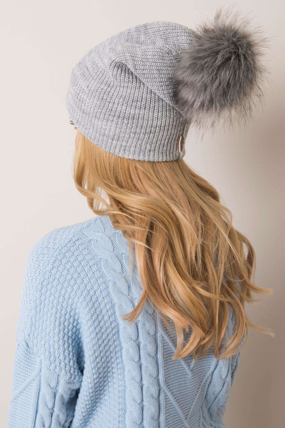 Gaiši pelēka cepure ar pomponu RUE PARIS