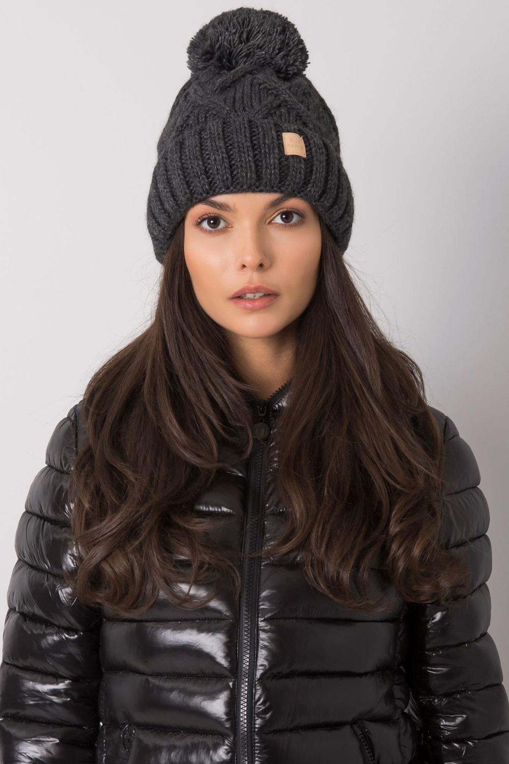 Tumši pelēka ziemas cepure ar pušķi poļu izstrādājums