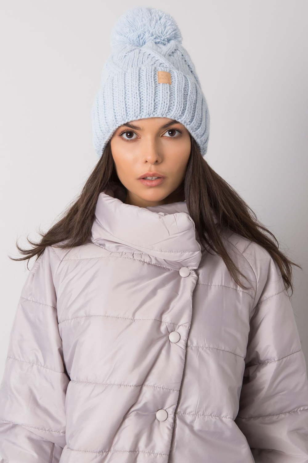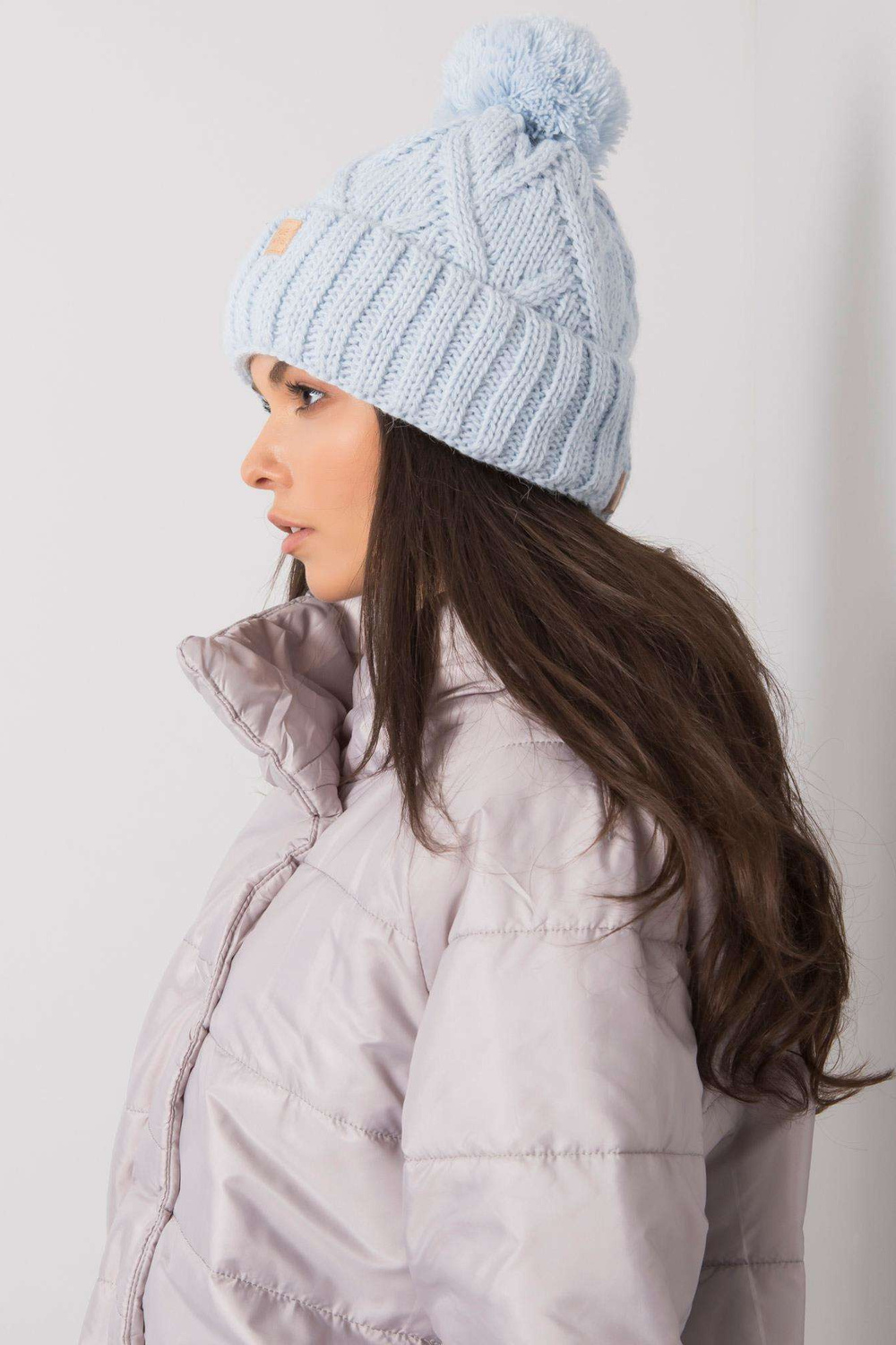 Gaiši zila ziemas cepure ar pušķi poļu izstrādājums
