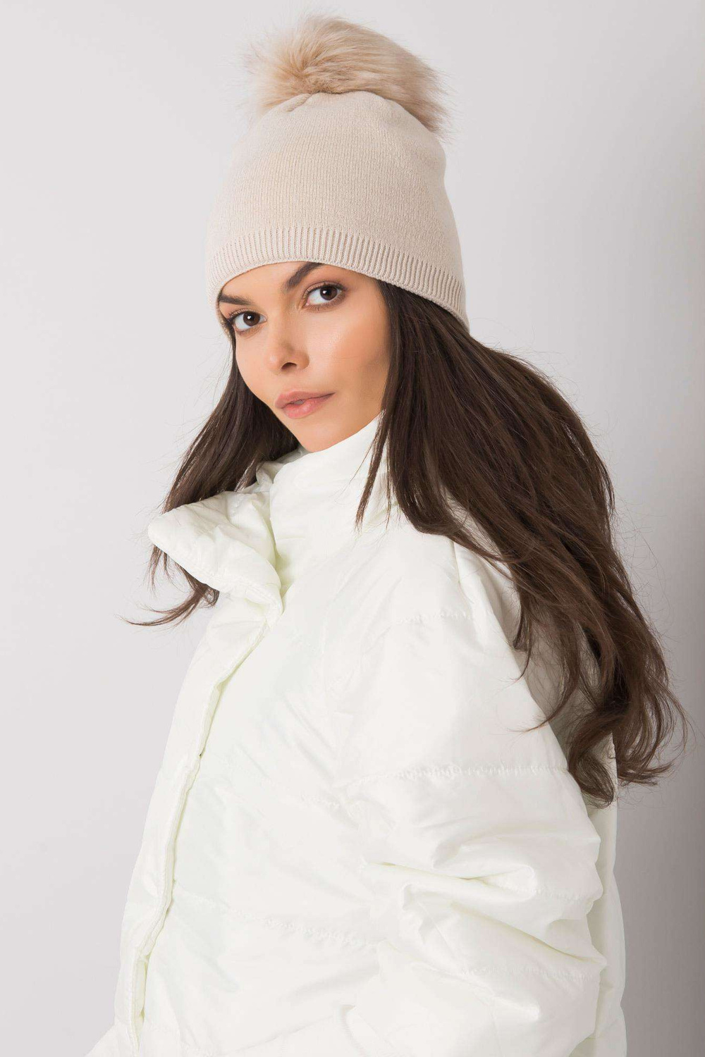 Bēša izolēta sieviešu cepure ar pušķi