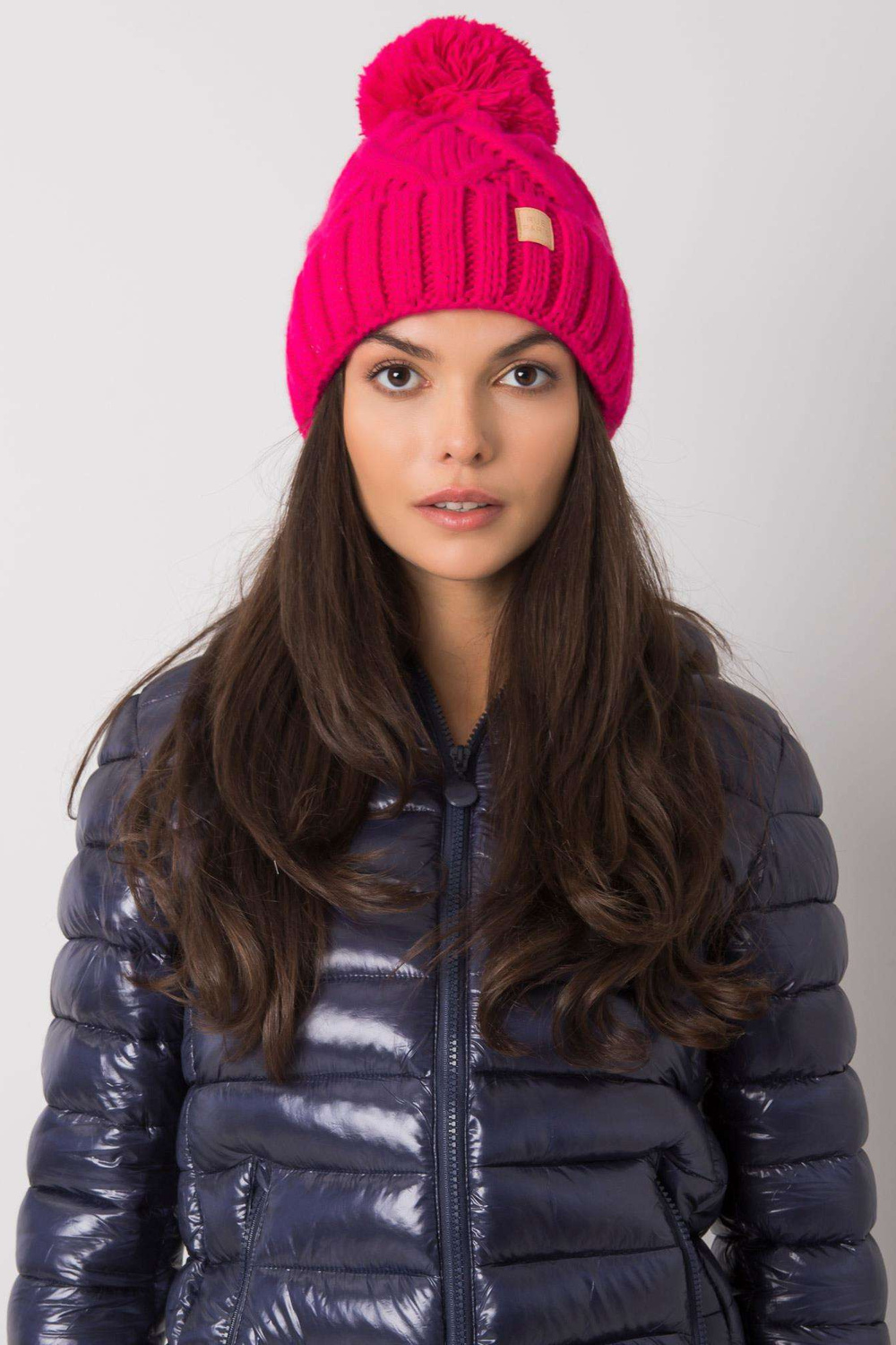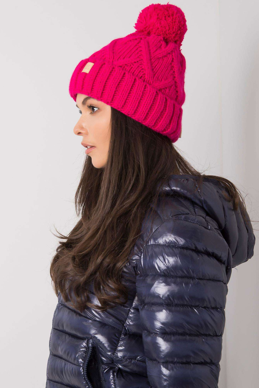 Rozā ziemas cepure ar pušķi poļu izstrādājums