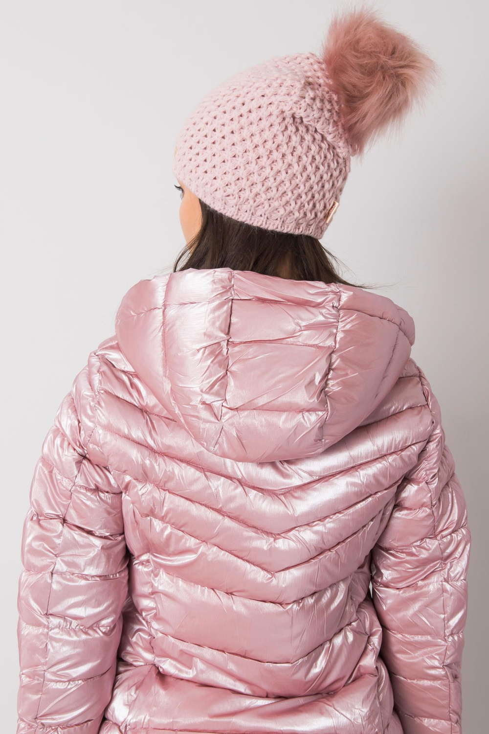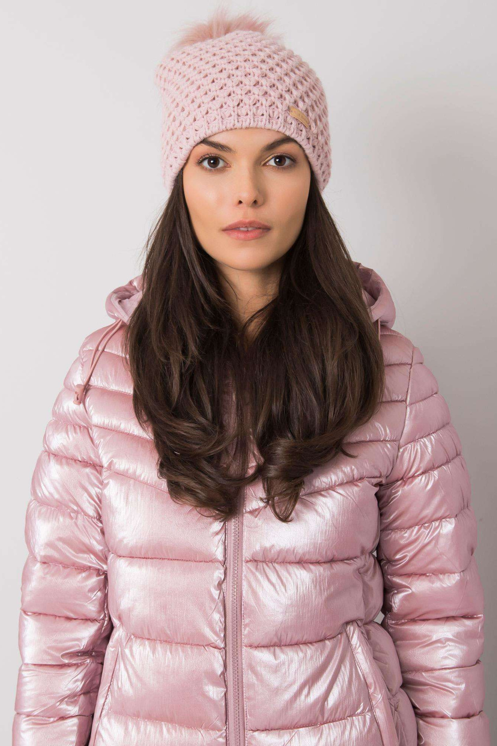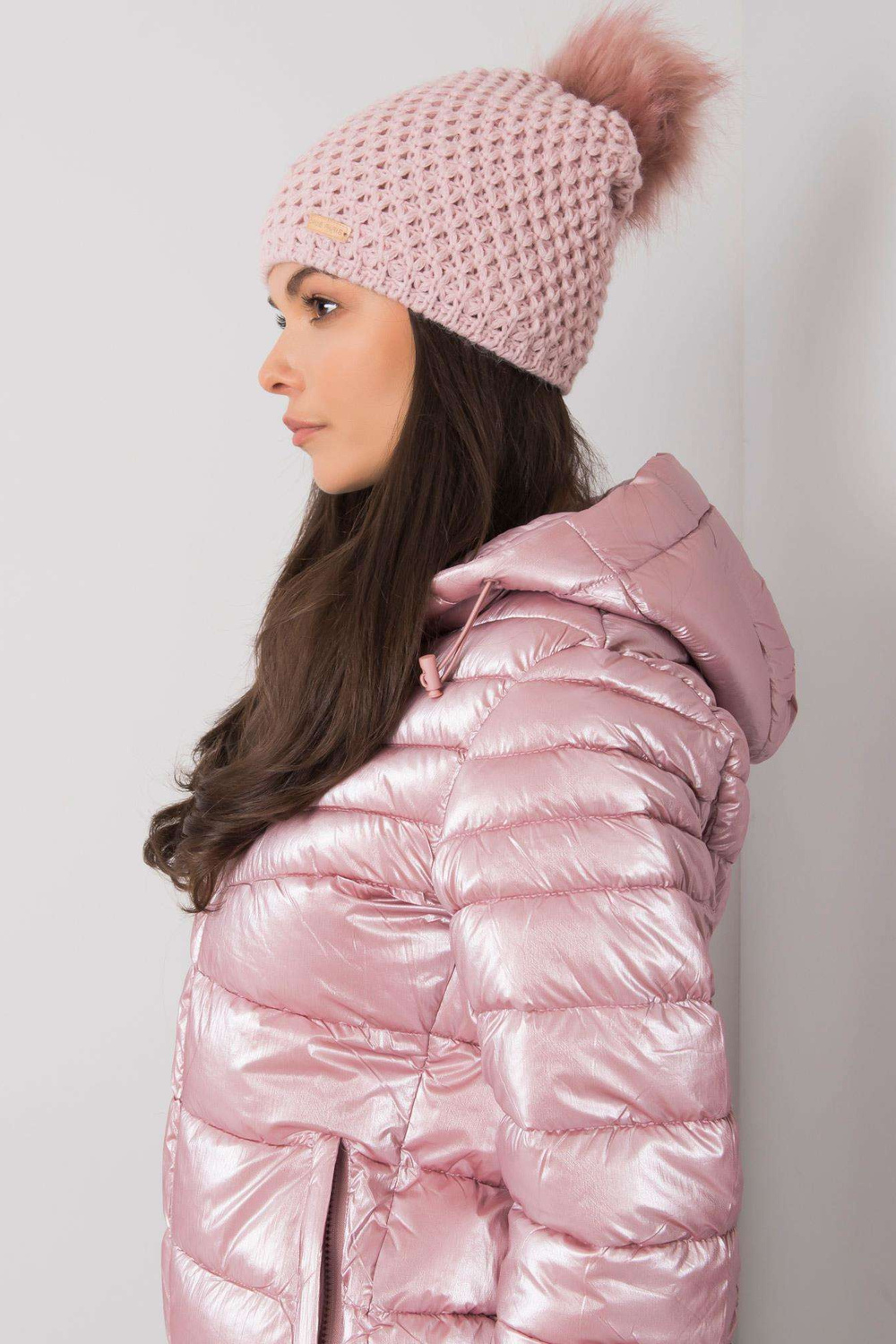 Gaiši rozā ziemas cepure ar pušķi poļu izstrādājums