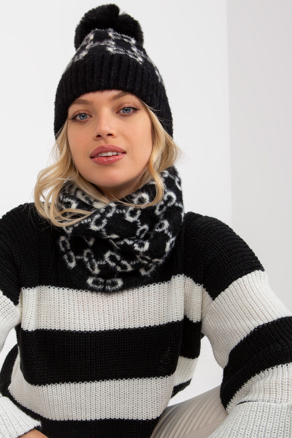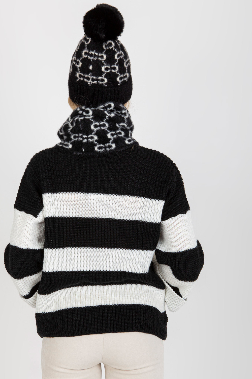 Melnbalta sieviešu ziemas cepure ar pomponu< /strong> .