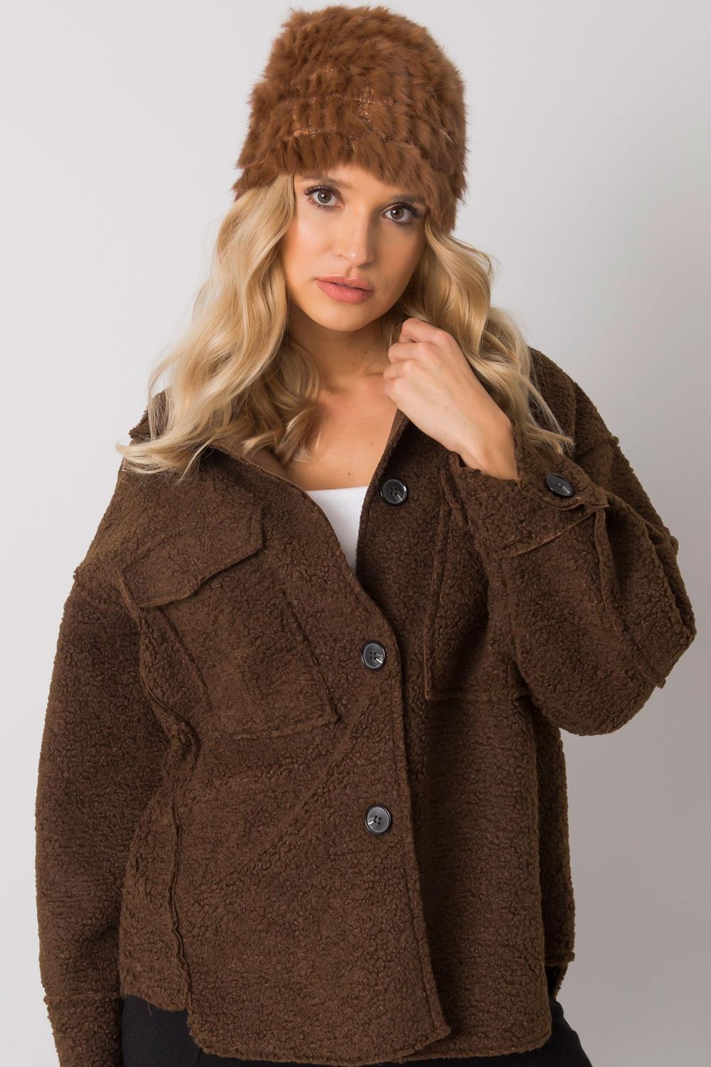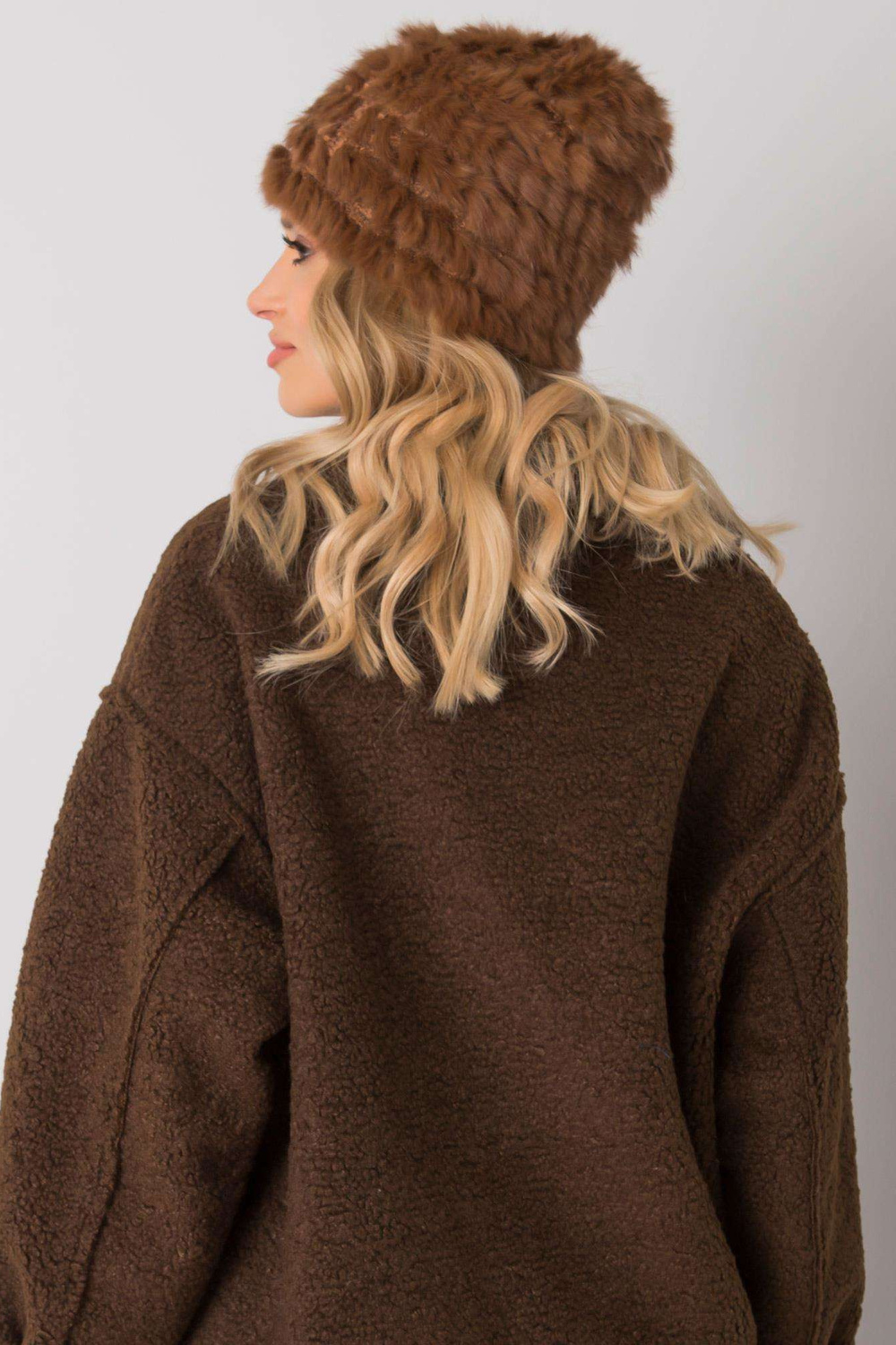 Gaiši brūna kažokādas cepure. materiāla sastāvs: augšdaļa - 100% lapīns, odere - 100% akrils mazgāšanas veids: nemazgāt